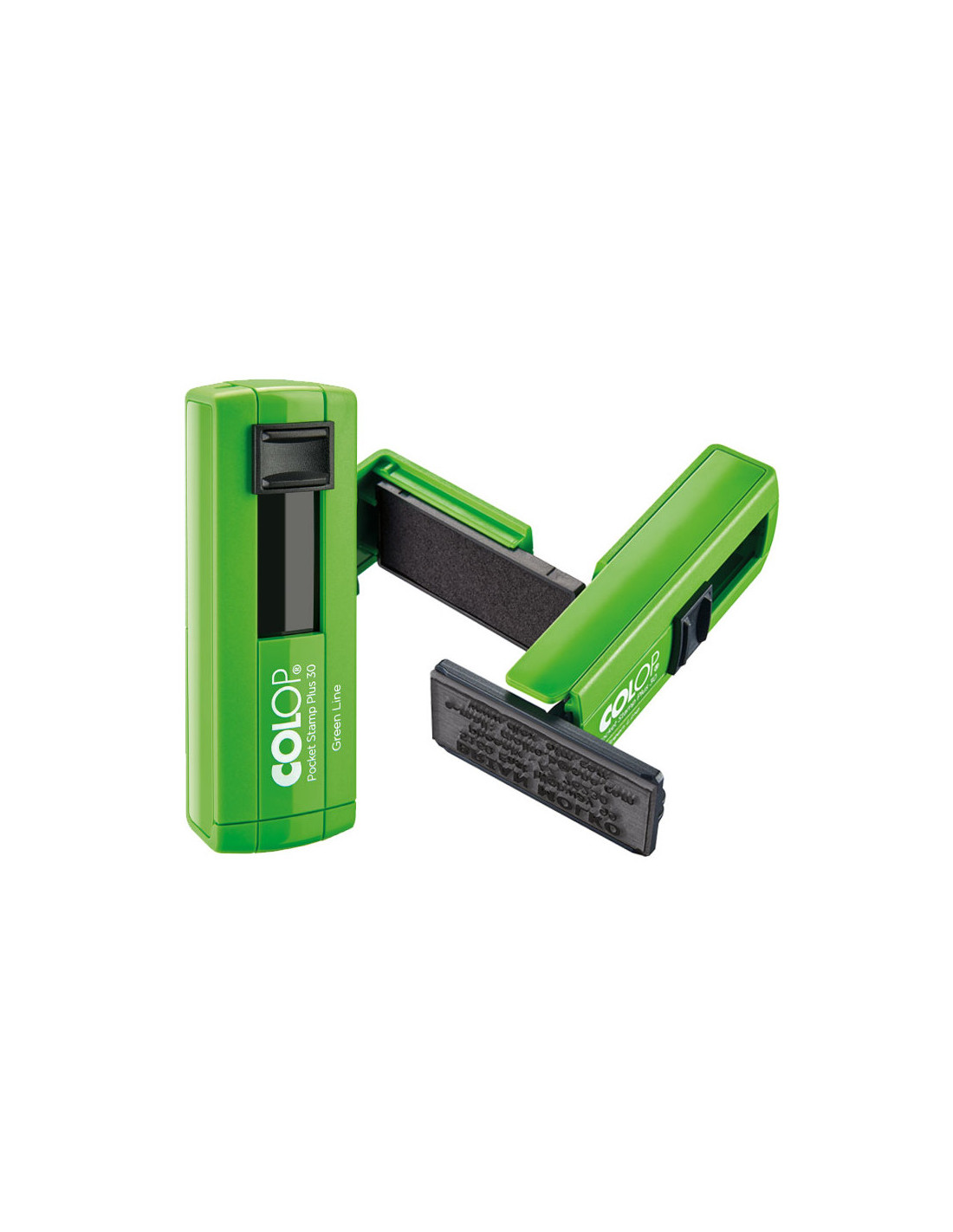 Серия Colop Green Line - пластмасовите части са от пластмаса, произведена от рециклирани отпадъци, преработени в гранули.