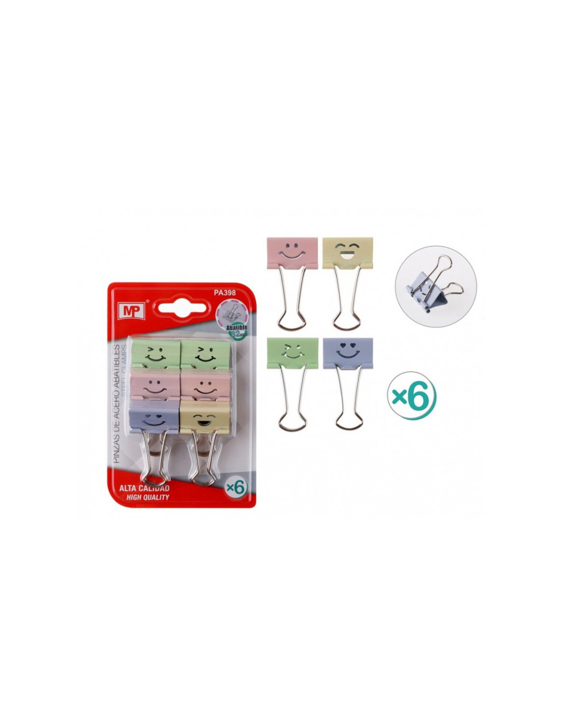Щипки 32 мм, 6 бр., емотикон пастел 260120 260120