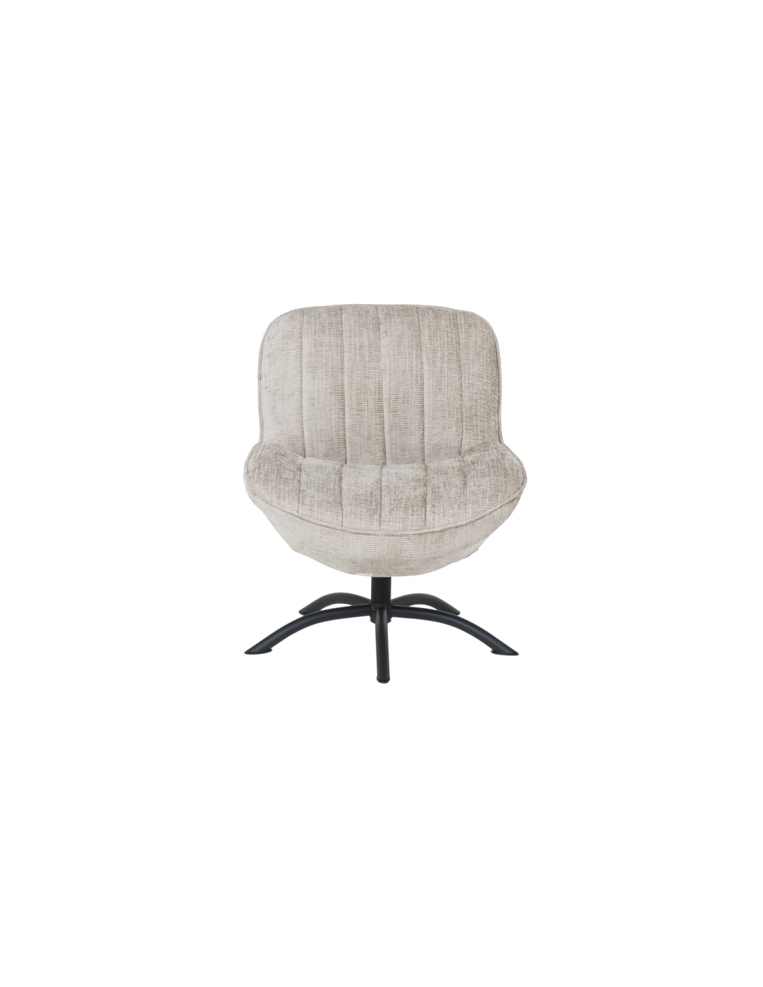 Кресло CARLY впечатлява със своя модерен дизайн, мека дамаска и комфортна седалка с изразени вертикални шевове. Металната основа с прахово покритие осигурява стабилност, а функцията за въртене на 360° добавя удобство в ежедневието. Стилен акцент за всеки интериор.