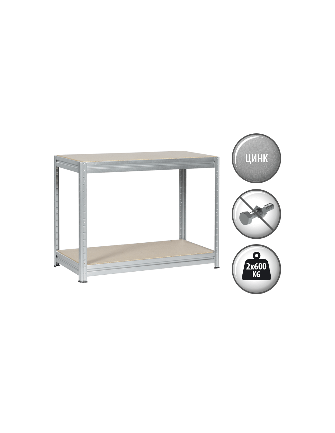 MEGA е стелаж, изработен от галванизиран метал с размери 87x160x60. Намира широко приложение в дома или на работното място. Разполага с два МДФ регулируеми рафта, всеки с максимална товароносимост от 600 кг. Металният стелаж е много лесен за монтаж, благодарение на безболтовата система. Пълна информация за размерите и характеристиките на модела ще намерите в таблицата в таб/поле "Техническа информация".