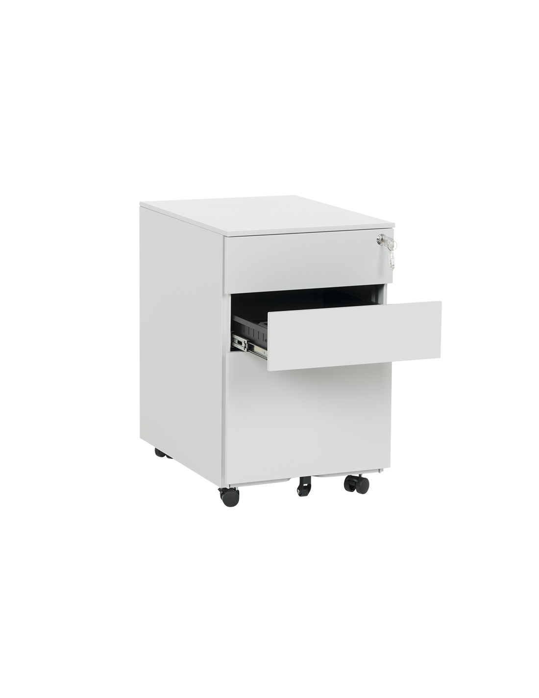 Офис контейнер Carmen CR-1806 K – практичен кардекс с 3 чекмеджета и централно заключване. След отключване всяко чекмедже се отваря самостоятелно, докато другите 2 са в затворено положение. Моделът е изработен от праховобоядисан метал с гладко покритие и пристига цял, без нужда от монтаж. В основата му има колела за лесно преместване. Пълна информация за размерите и характеристиките на модела ще намерите в таблицата в таб/поле "Техническа информация".
