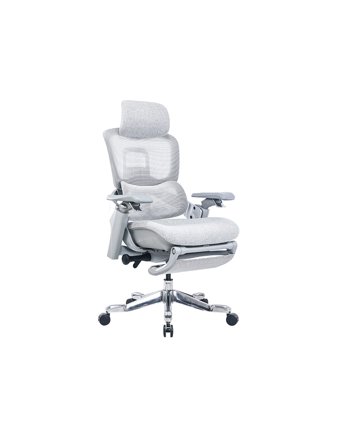 DOLE W е ергономичен стол от висок клас, който комбинира удобство с модерен дизайн. Седалката и подглавникът са изработени от висококачествена дамаска, а облегалката от дишаща мрежа за по-добра циркулация на въздуха. Моделът разполага със стабилна алуминиева основа, както и с лумбална опора, която се адаптира спрямо движенията на тялото. Подлакътниците се коригират в 4 направления, а подглавникът в 3. DOLE W има и специална регулируема поставка за крака, която да подпомогне почивката по време на работния ден. Пълна информация за размерите и характеристиките на модела ще намерите в таблицата в таб/поле "Техническа информация".