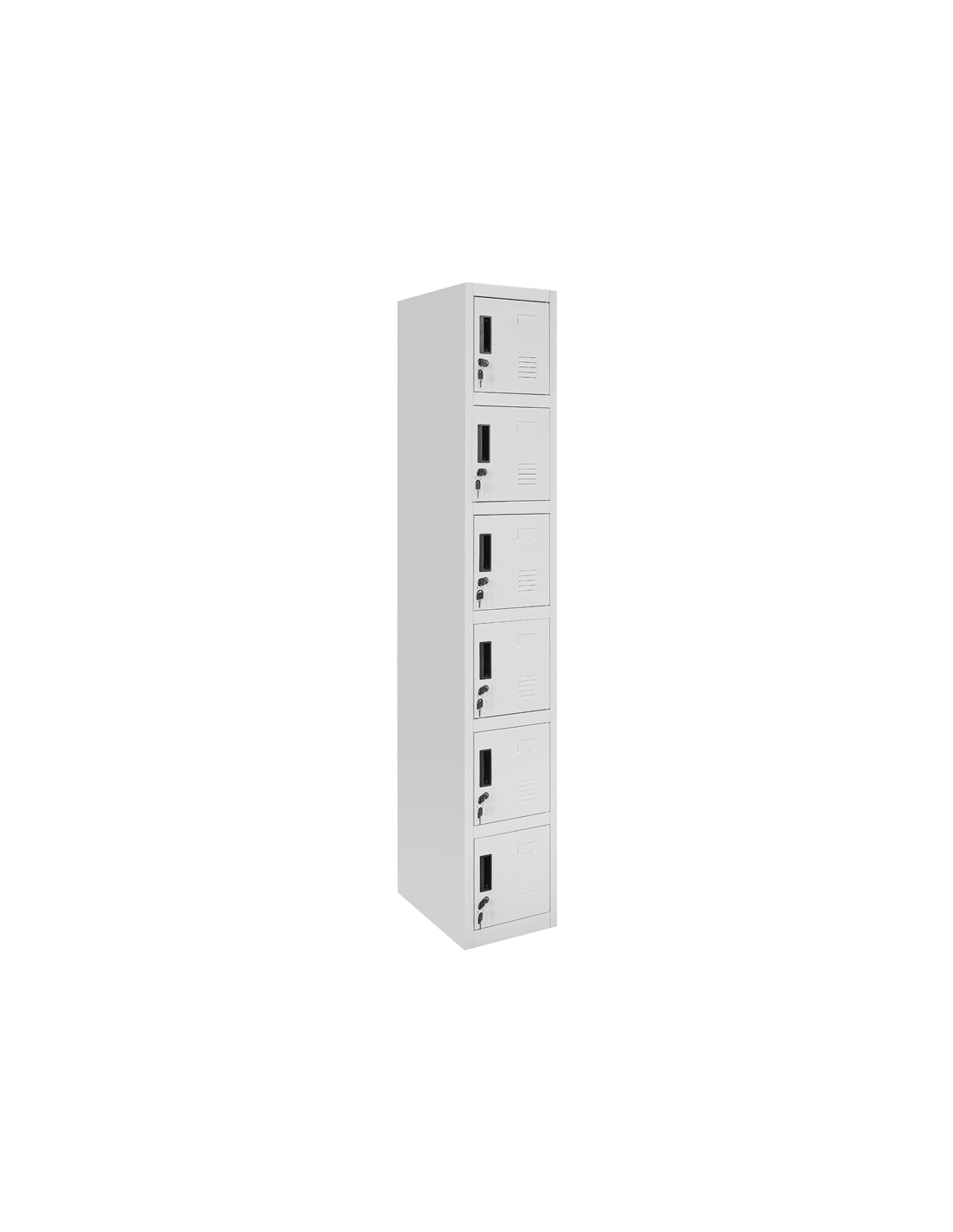Метален шкаф Carmen CR-1265 ZH разполага с 6 отделни врати, всяка с индивидуално заключване с ключ и вграден отвор за поща или съобщения. Подходящ е за пощенски кутии, служебни шкафчета или достъп до лични вещи в административна или търговска среда. Компактният вертикален дизайн пести място и осигурява добра организация. Пълна информация за размерите и характеристиките на модела ще намерите в таблицата в таб/поле "Техническа информация".
