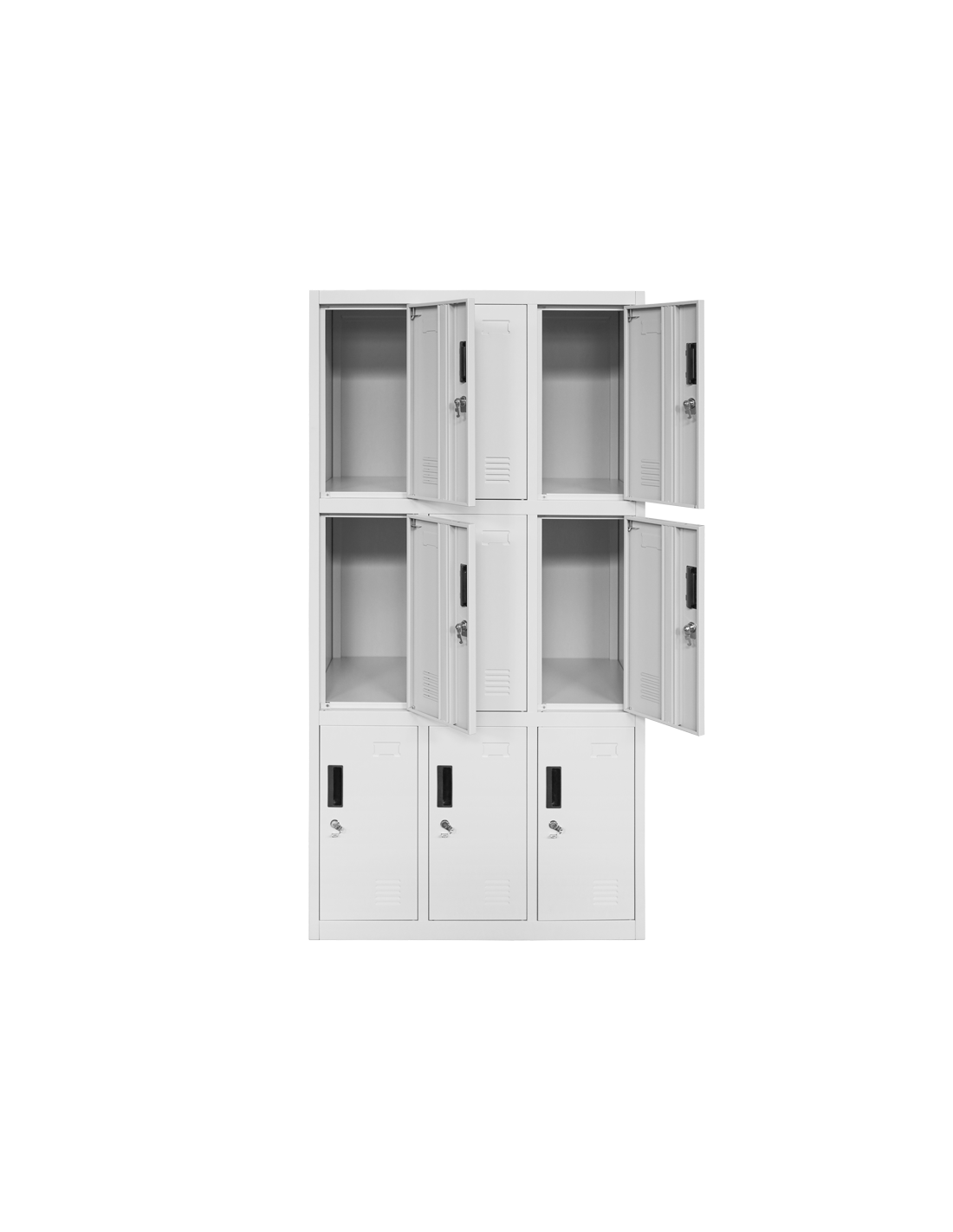 Метален шкаф Carmen CR--1274 ZH е с 9 отделни врати, всяка оборудвана с индивидуално заключване с ключ и вграден отвор за етикетиране и вентилация. Шкафчетата се затварят посредством заключващ механизъм с помощта на катинар. Катинарите не са включени в цената. Подходящ е за съхранение на лични вещи в офиси, училища, съблекални или търговски обекти. Устойчивата конструкция осигурява сигурност и удобен достъп за всеки потребител. Пълна информация за размерите и характеристиките на модела ще намерите в таблицата в таб/поле "Техническа информация".