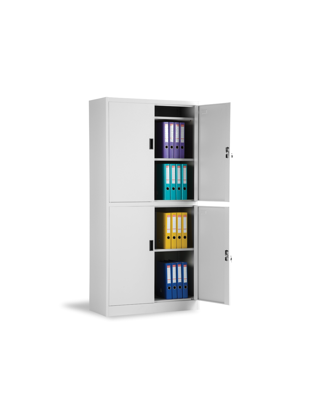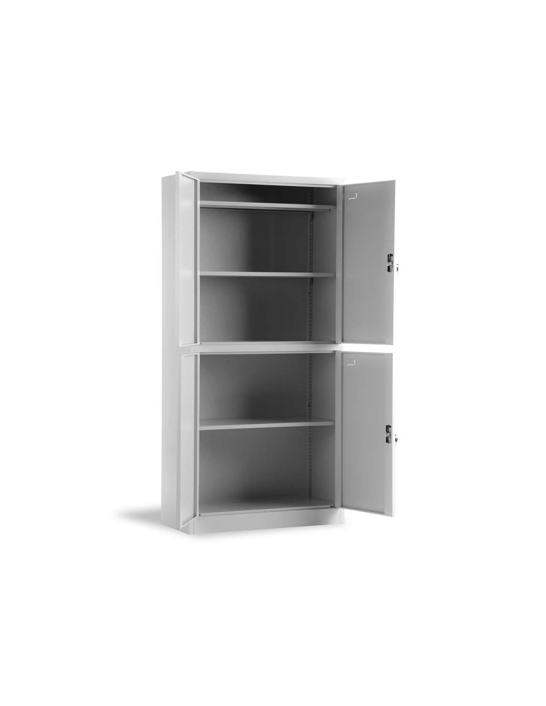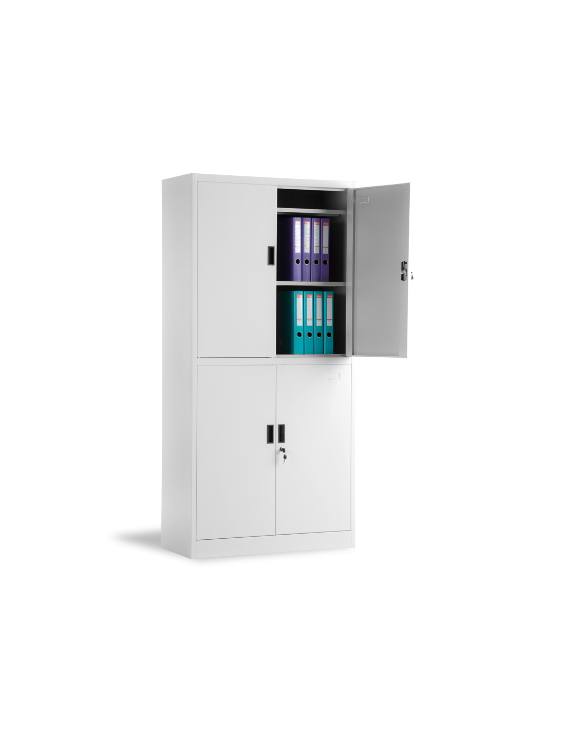 Металният шкаф CR-1246 GRZ разполага с две самостоятелно заключващи се отделения с 4 метални врати и съдържа 3 рафта с регулируема височина. Серията метални мебели Carmen включва офис контейнери, метални гардероби, метални контейнери, метални шкафове за документи, кардекс, метални сейфове, метални бюра и метални стелажи. Пълна информация за размерите и характеристиките на модела ще намерите в таблицата в таб/поле "Техническа информация".
