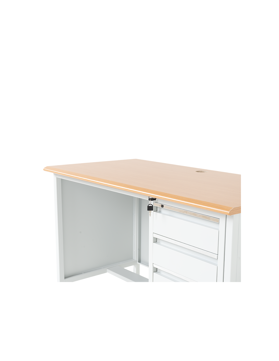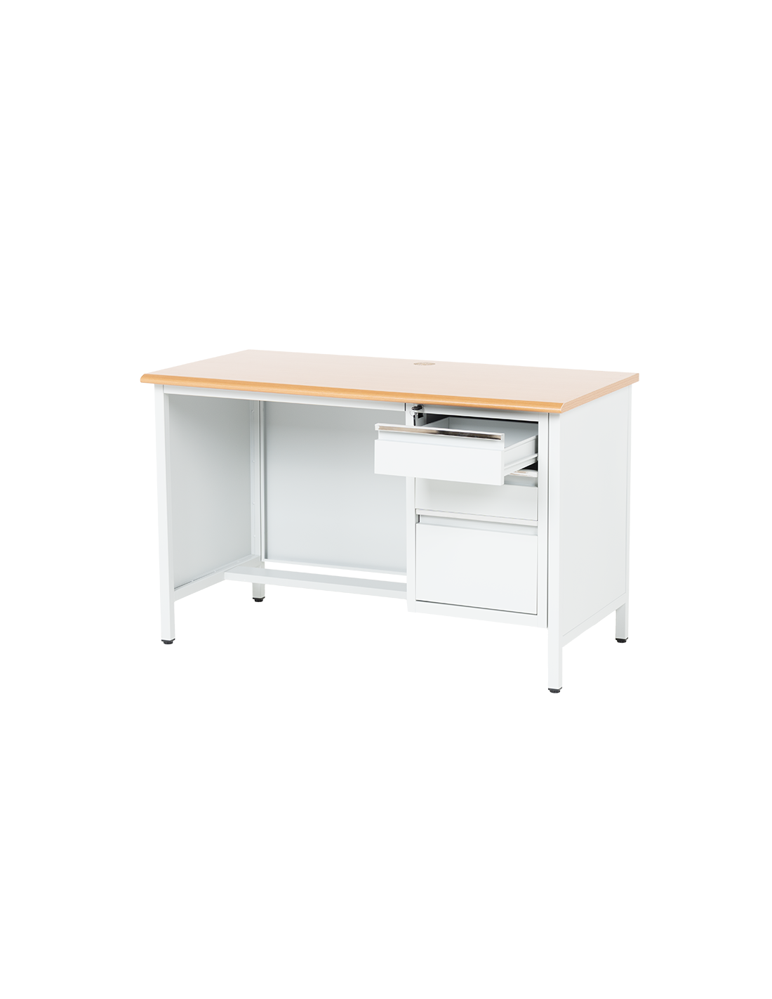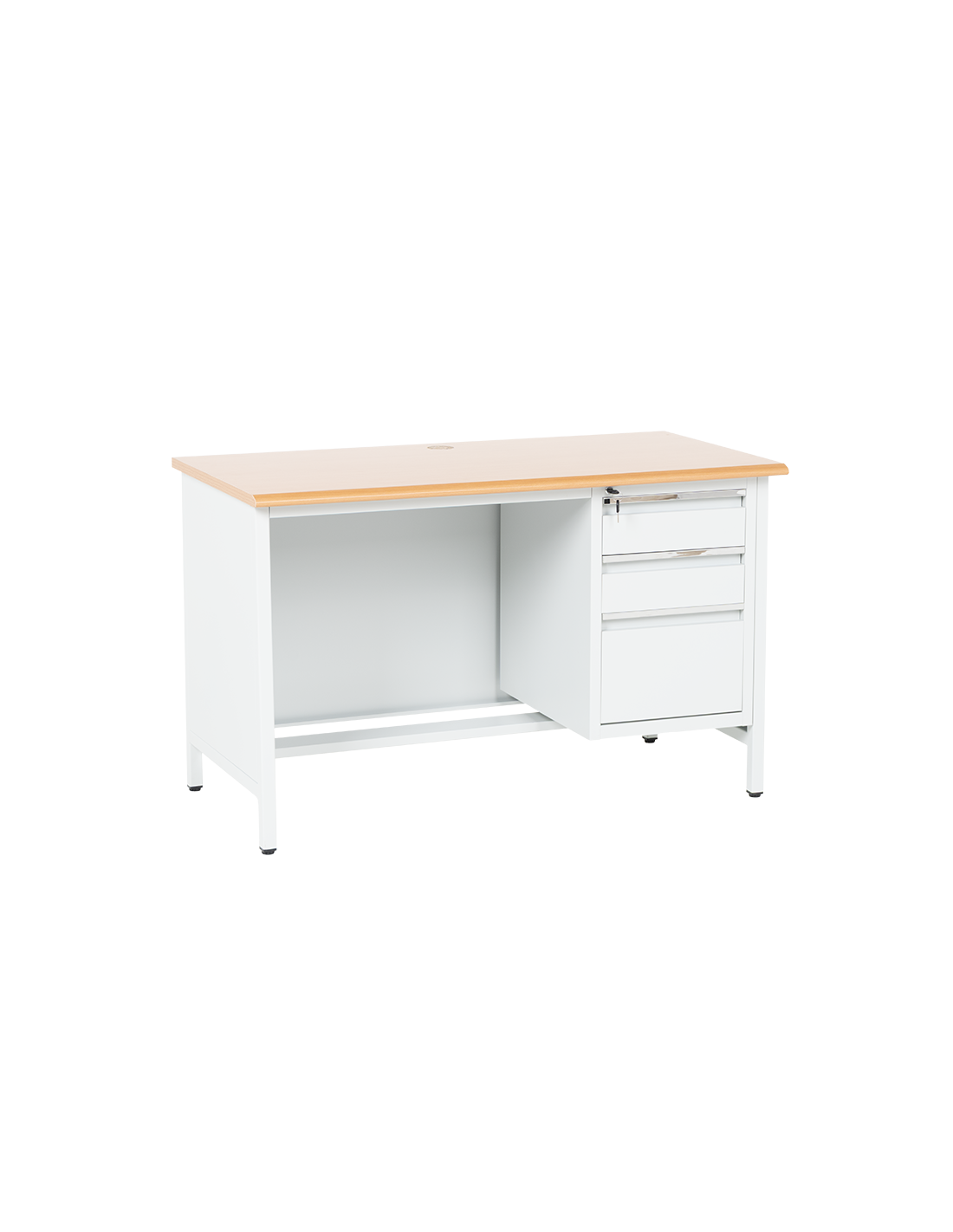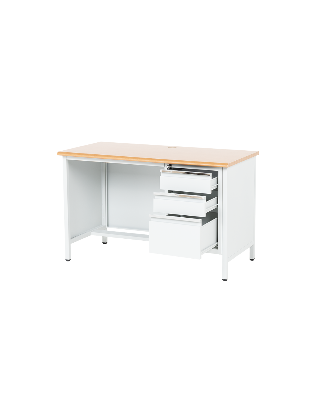Метално бюро Carmen CR-1314 K е здраво и функционално решение за офис, работилница или учебна среда. Изработено от праховобоядисан метал с плот от МДФ (120х60 см), то предлага надеждност и удобство. Разполага с три чекмеджета със заключване за сигурно съхранение на документи и принадлежности. Пълна информация за размерите и характеристиките на модела ще намерите в таблицата в таб/поле 'Техническа информация'.