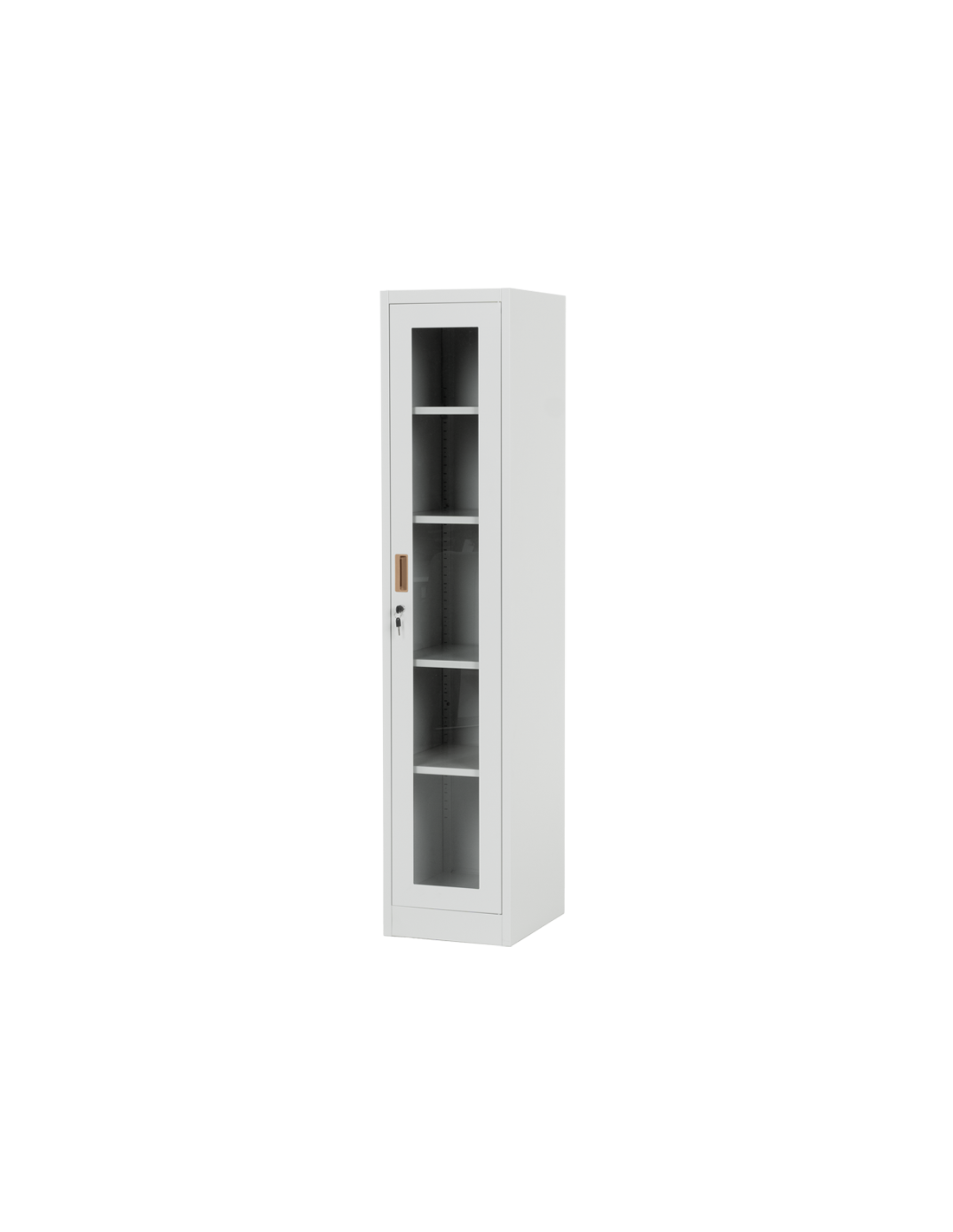 Метален шкаф Carmen CR-1001 L съчетава изчистен дизайн и функционалност, идеален за организиране на документи и принадлежности в офиса или дома. Със своите регулируеми рафтове и заключваща се врата, той осигурява сигурност и удобство, докато сивият му цвят се вписва перфектно във всяко интериорно решение. Пълна информация за размерите и характеристиките на модела ще намерите в таблицата в таб/поле "Техническа информация".