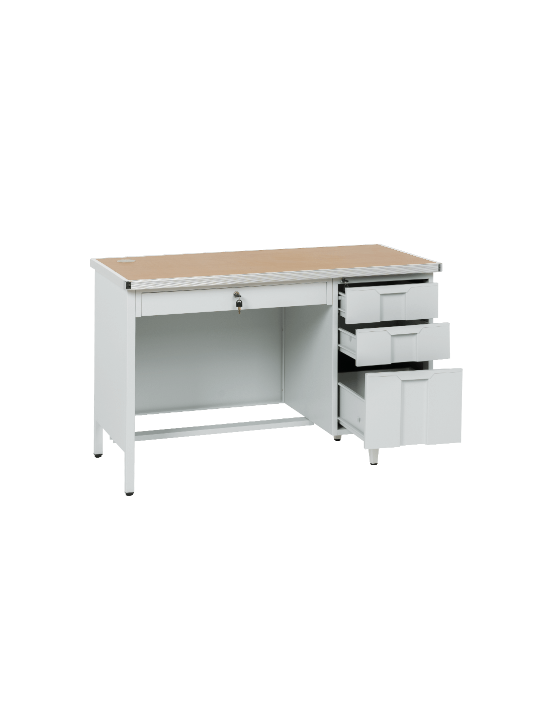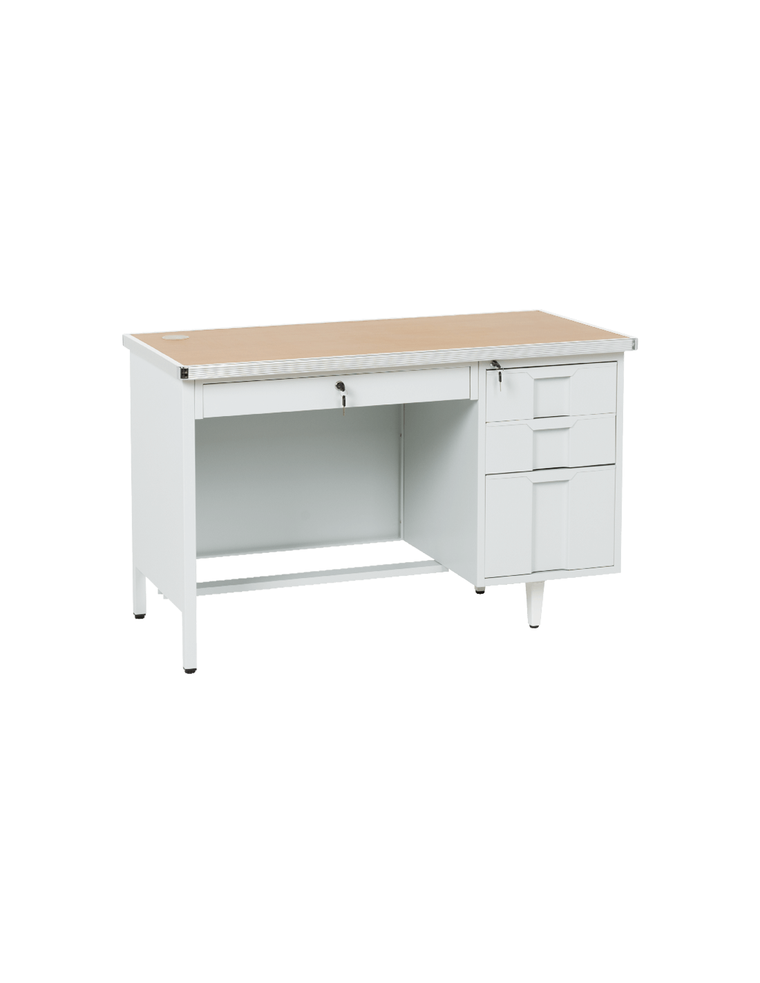 Металното бюро Carmen CR‑1318 L е създадено за интензивна ежедневна работа в сервизна или производствена среда. Конструкцията от прахово боядисан метал осигурява изключителна стабилност, а плотът с дебелина 32 мм от ПДЧ е допълнително подсилен с алуминиев кант – за по-добра устойчивост и професионален външен вид. Бюрото разполага с 4 чекмеджета, вградени отвори за кабели и система за заключване – практично и надеждно решение за организиране на инструментите и документите на едно място. Пълна информация за размерите и характеристиките на модела ще намерите в таблицата в таб/поле „Техническа информация“.