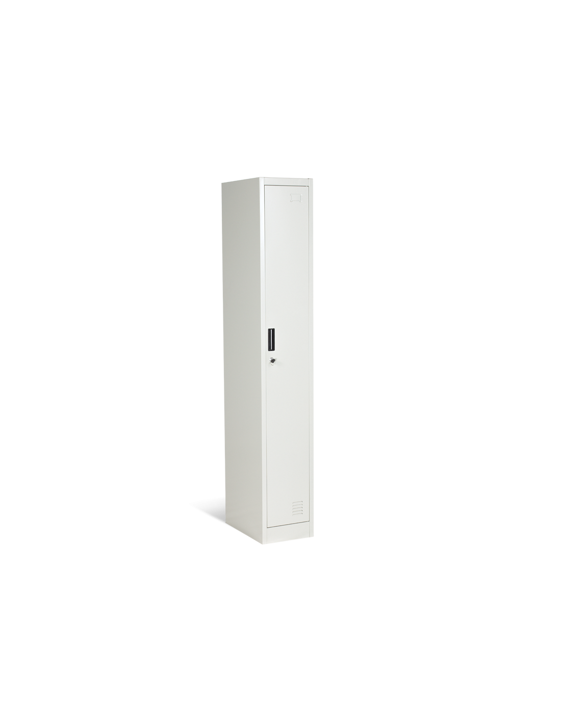 Метален шкаф за съблекалня CR-1242-1 J от серията метални шкафове на Carmen разполага с една металнa врата, един рафт и възможност за заключване. Системата от метални мебели на Carmen включва офис контейнери, метални гардероби за съблекалня, метални контейнери, метални шкафове за документи, кардекс и други. Пълна информация за размерите и характеристиките на модела ще намерите в таблицата в таб/поле "Техническа информация".