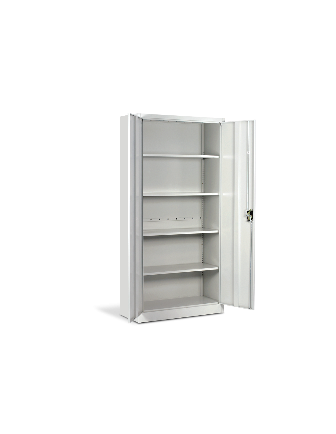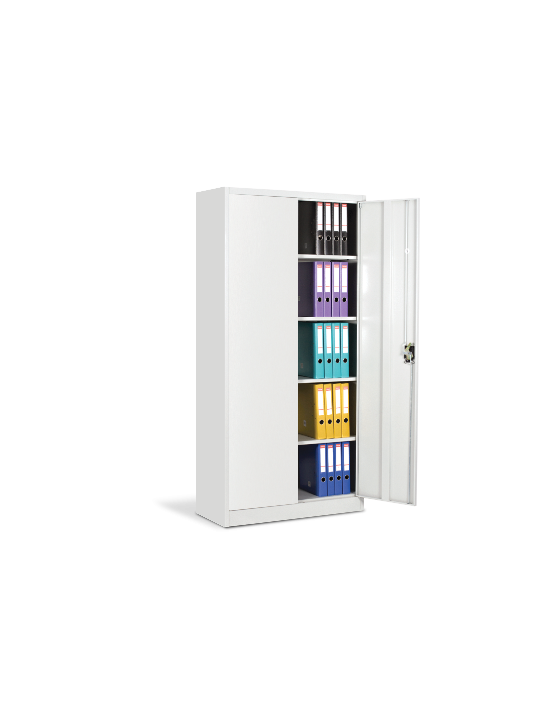 Метален шкаф CR-1235 L от серията метални шкафове на Carmen е удобна офис мебел за съхранение на важна документация. Моделът разполага с четири регулируеми рафта и надежден триточков механизъм за заключване. Колекцията мебели от метал на Carmen включва метални шкафове, метални гардероби, офис контейнери, шкафове за документация, кардекс и други. Пълна информация за размерите и характеристиките на модела ще намерите в таблицата в таб/поле "Техническа информация".