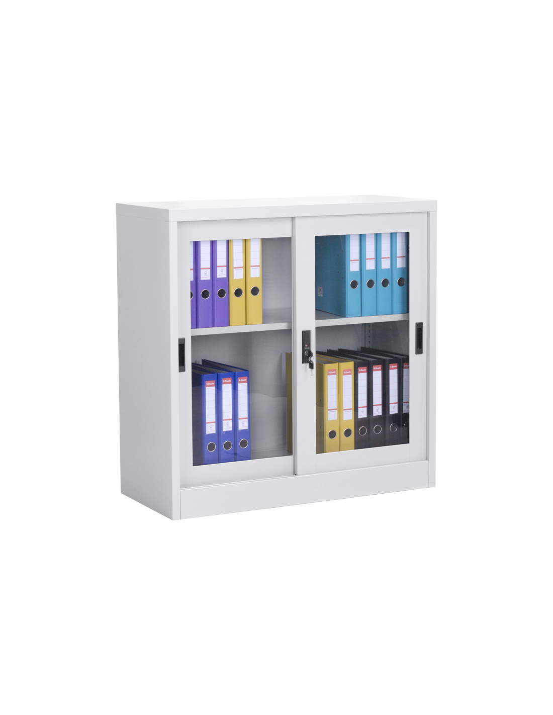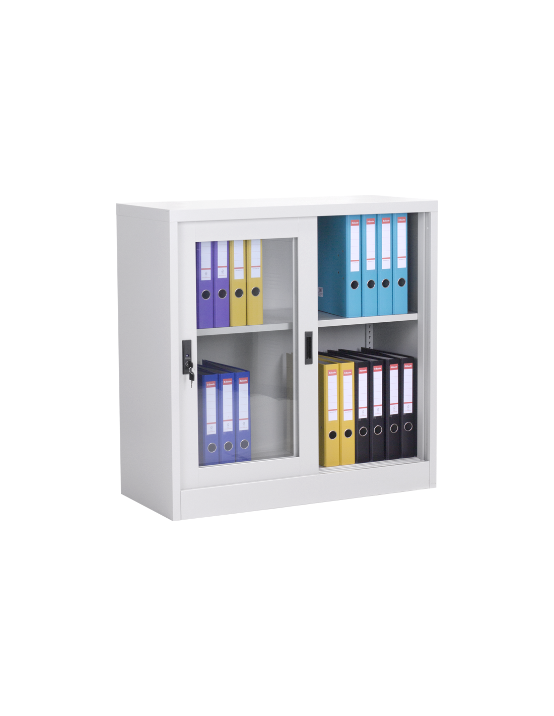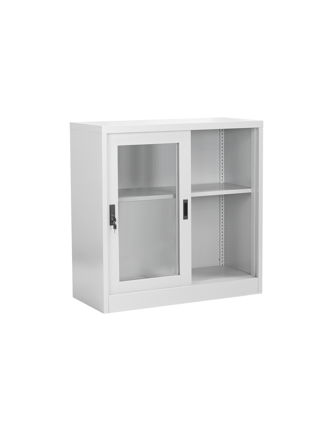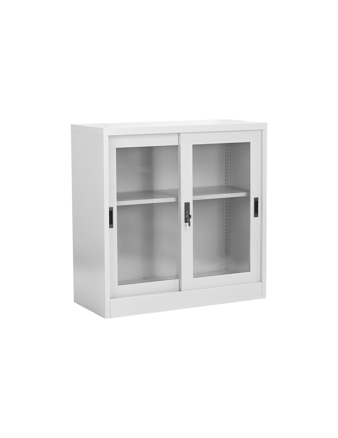Метален шкаф CR-1264 J от серията метални шкафове на Carmen разполага с две плъзгащи метални врати със стъкло и рафт с регулируема височина. Системата от метални мебели на Carmen включва офис контейнери, метални гардероби за съблекалня, метални контейнери, метални шкафове за документи, кардекс и други. Пълна информация за размерите и характеристиките на модела ще намерите в таблицата в таб/поле "Техническа информация".