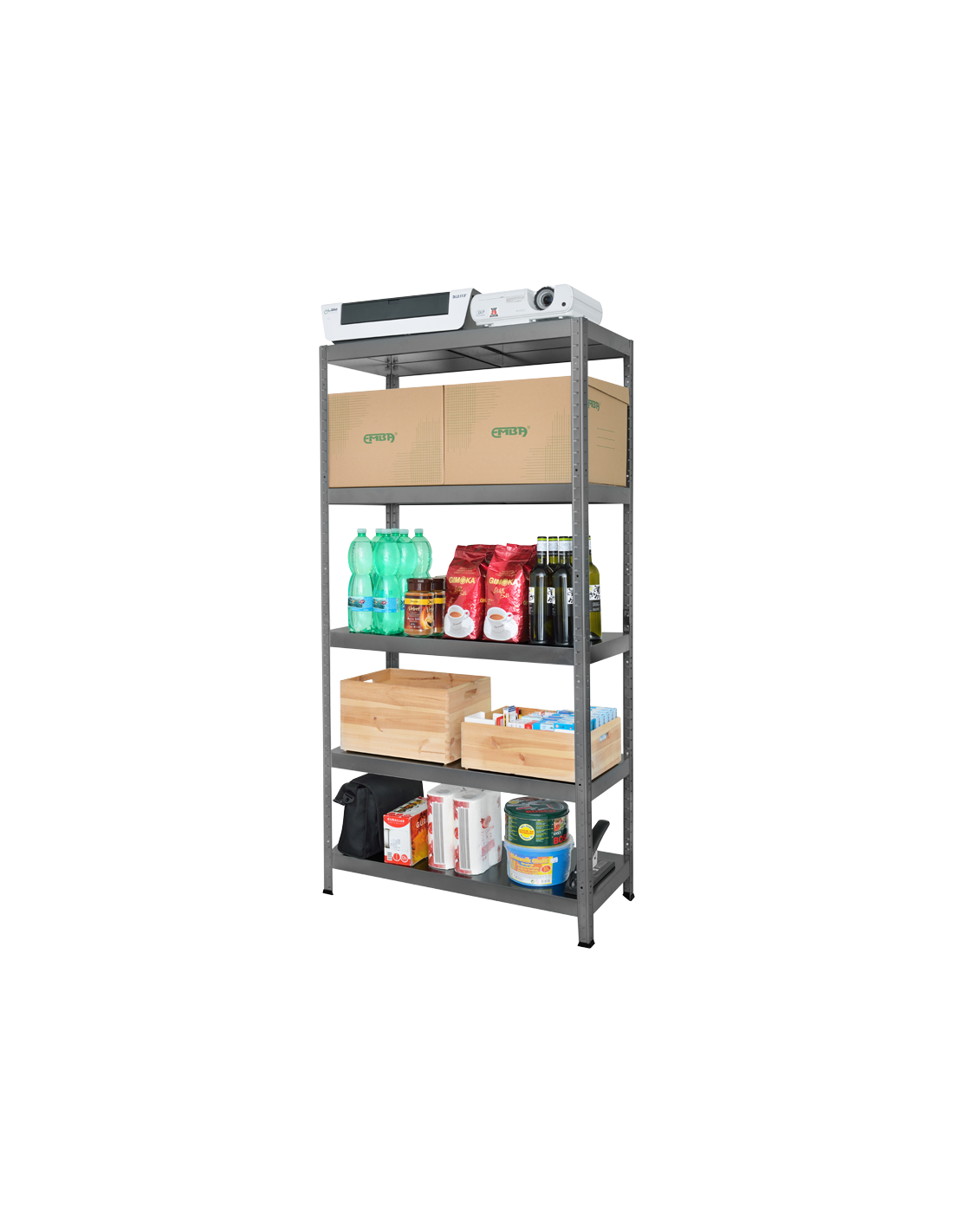 Металният стелаж HARD 90 разполага с 5 рафта, всеки от които може да издържи товар до 90 кг. Тяхната височина и позиция може да бъде регулирана. Стелажът се сглобява изключително лесно чрез безболтова система за монтаж. Цялата конструкция и рафтовете са изработени от галванизиран метал с покритие от еко боя. Пълна информация за размерите и характеристиките на модела ще намерите в таблицата в таб/поле "Техническа информация".