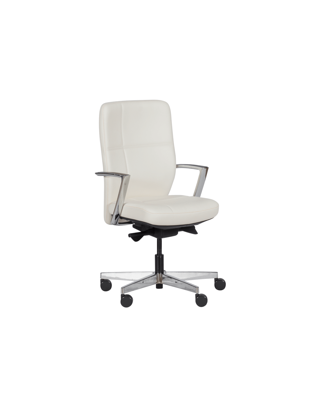 SONIA е ергономичен офис стол със стилна визия и голям брой функции за максимално удобство. Моделът е с люлеещ механизъм и възможност за заключване в позиция под наклон, а седалката му може да се регулира както по височина, така и по дълбочина. Столът е изработен от висококачествена естествена кожа и алуминиева основа със силиконови колелца. Пълна информация за размерите и характеристиките на модела ще намерите в таблицата в таб/поле "Техническа информация".