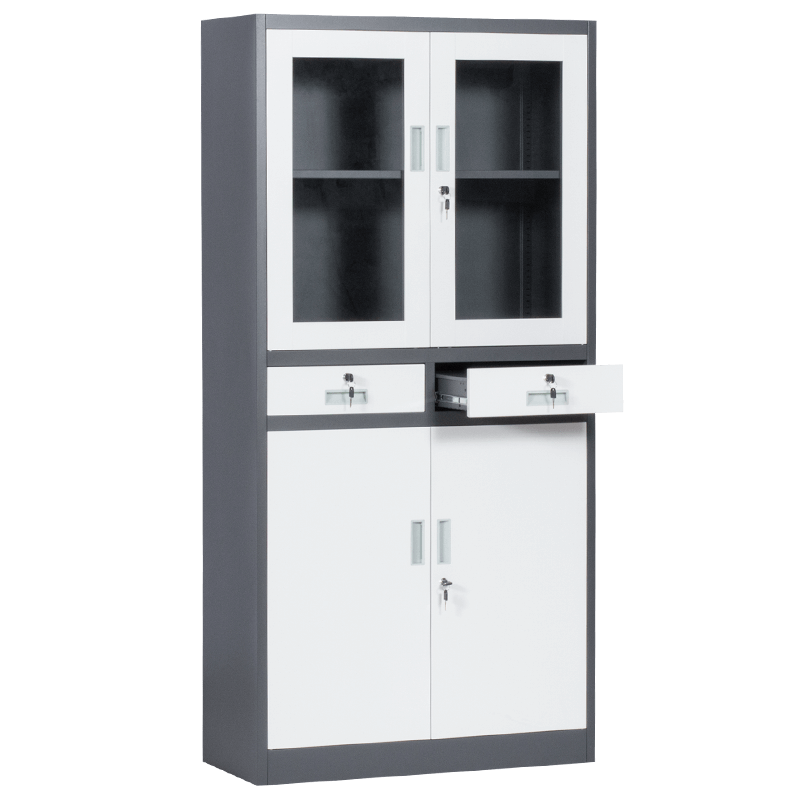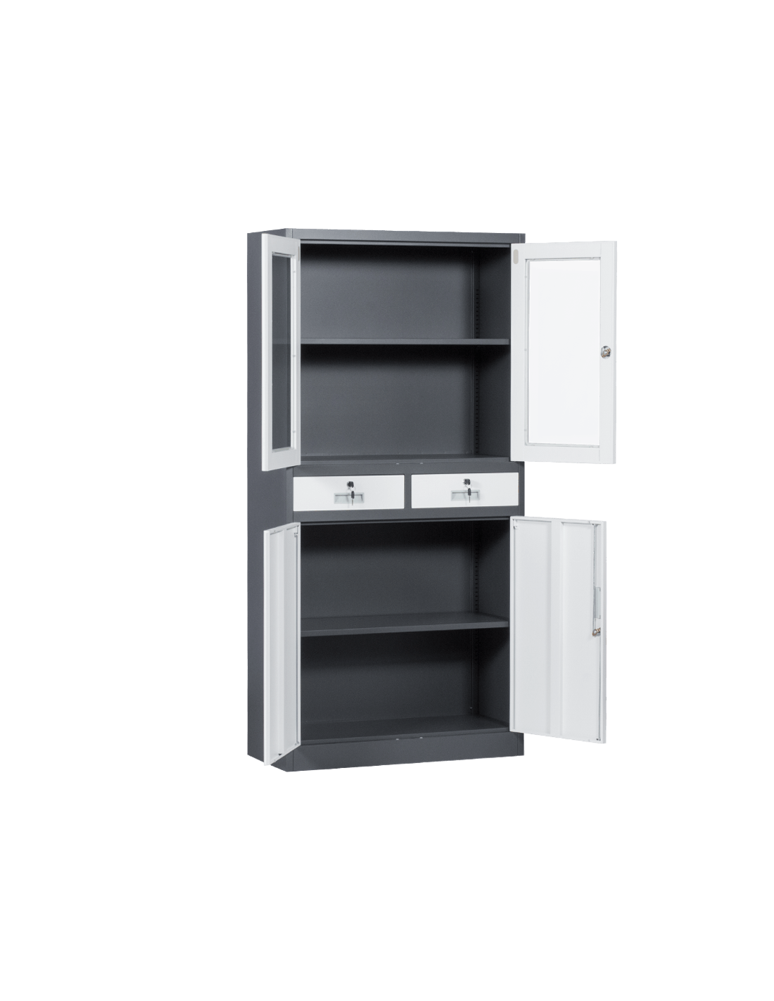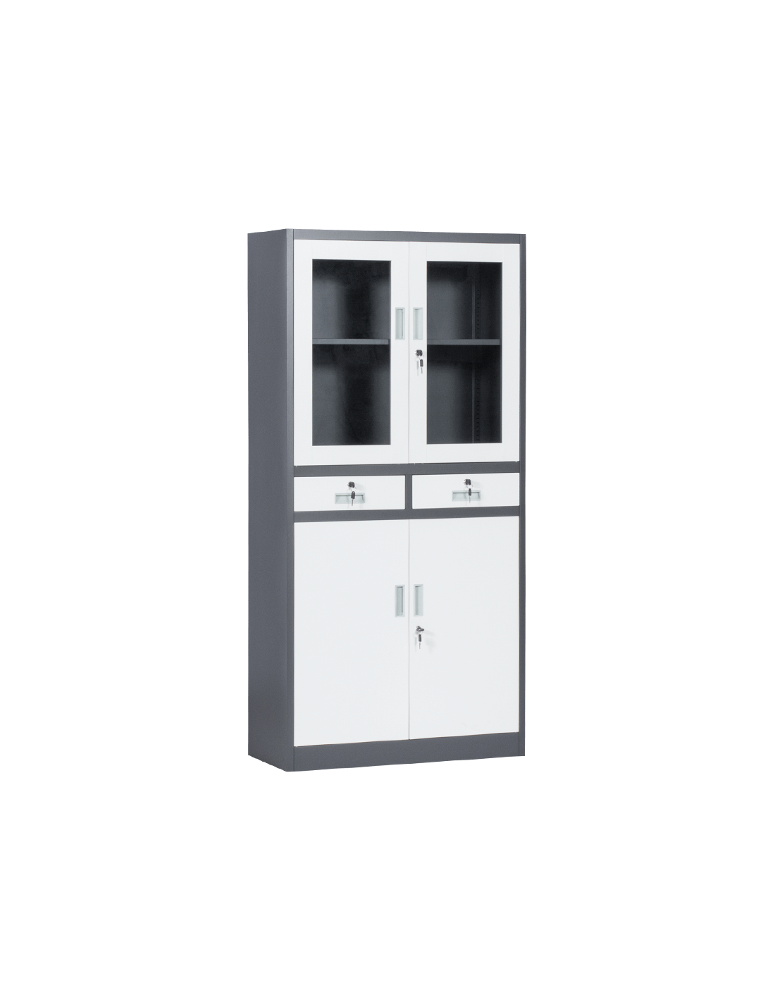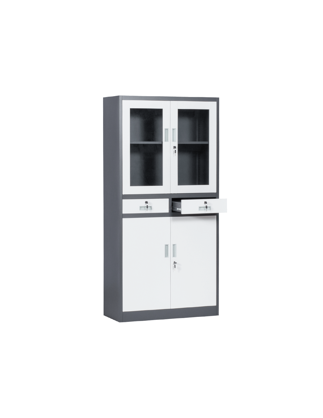 Металният шкаф за документи Carmen CR-1247 Е L SAND е модел с две отделения и две чекмеджета, всяко от които се заключва. В горния и долния шкаф има по 1 рафт с регулируема височина. Пълна информация за размерите и характеристиките на модела ще намерите в таблицата в таб/поле "Техническа информация".