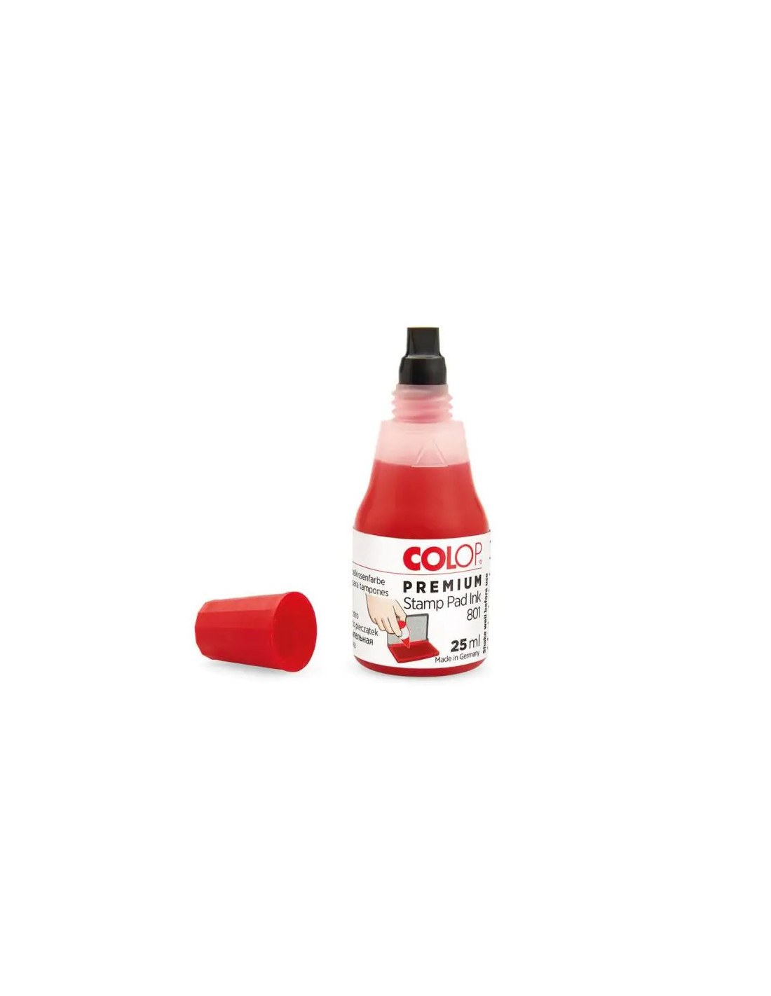 Мастилото Colop 801 e подходящо за намастиляване на тампони за печат.