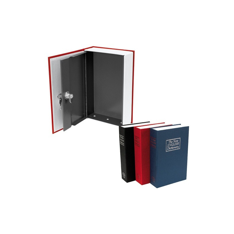 Отвън сейфът прилича на книга и е с надпис English Dictionary - съхранява се в библиотека, на рафт с книги или папки.