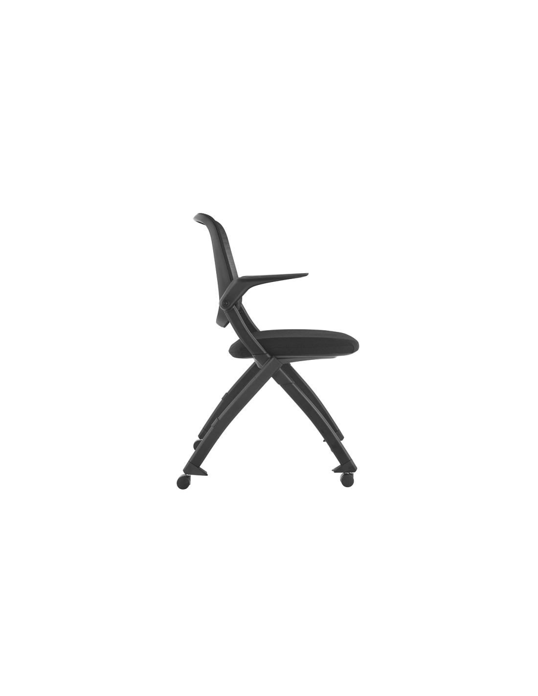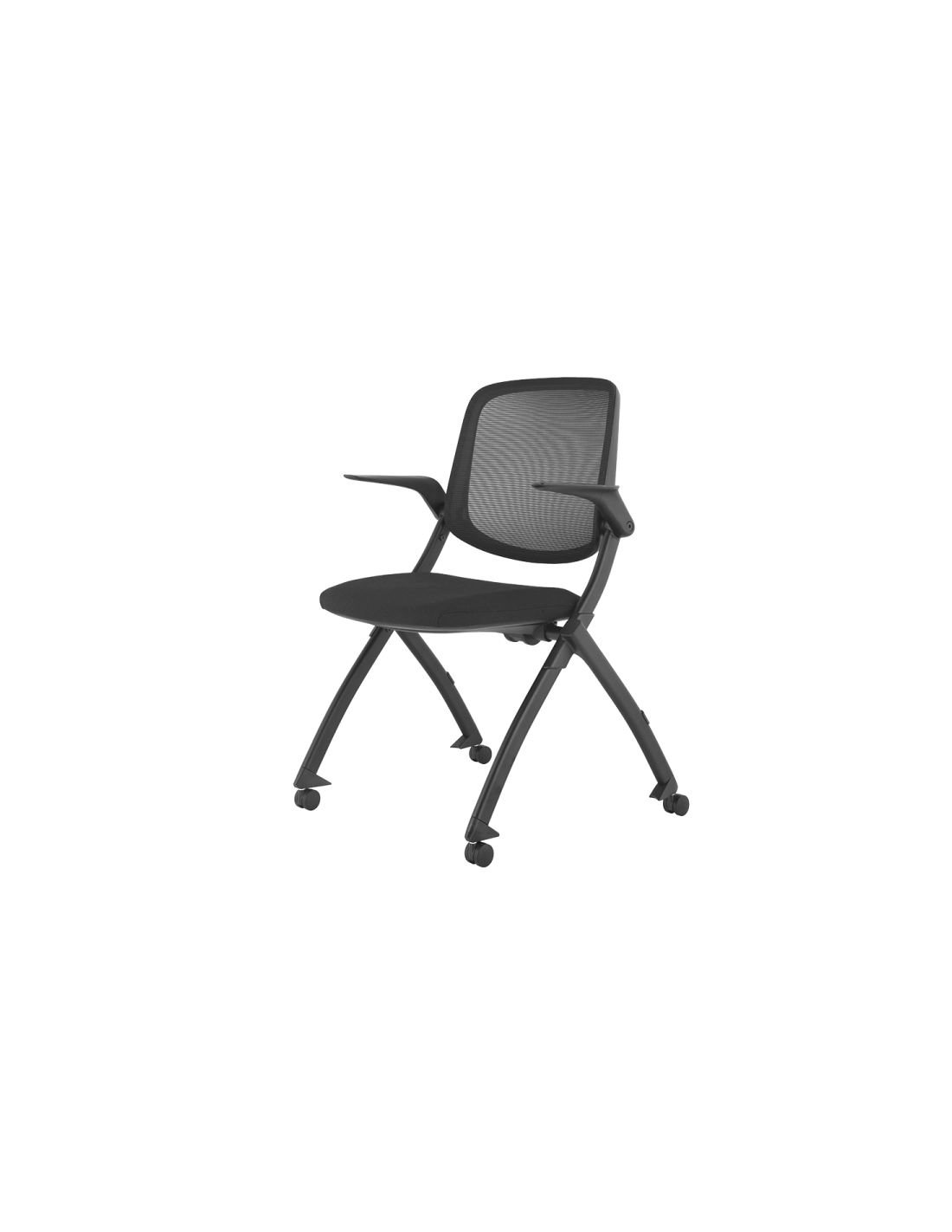 Посетителският стол AGNO е отлично решение за конферентни зали и офисни помещения, където се търси комбинация от комфорт, стил и компактност. За оптимално удобство, столът е изработен от комбинация от дишаща мрежа и дамаска. Той разполага с прахово боядисана метална база и колелца, които осигуряват лесно придвижване. Сгъваемите подлакътници позволяват бързо и лесно прибиране на стола под бюрото, спестявайки място. Столът е предназначен за дълготрайна употреба, издържайки на натоварване до 136 кг.