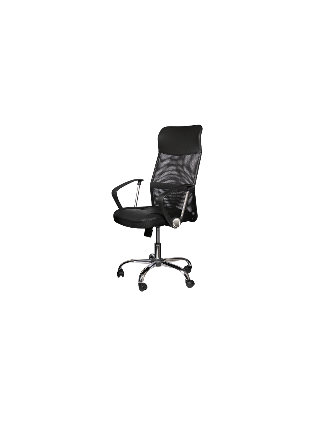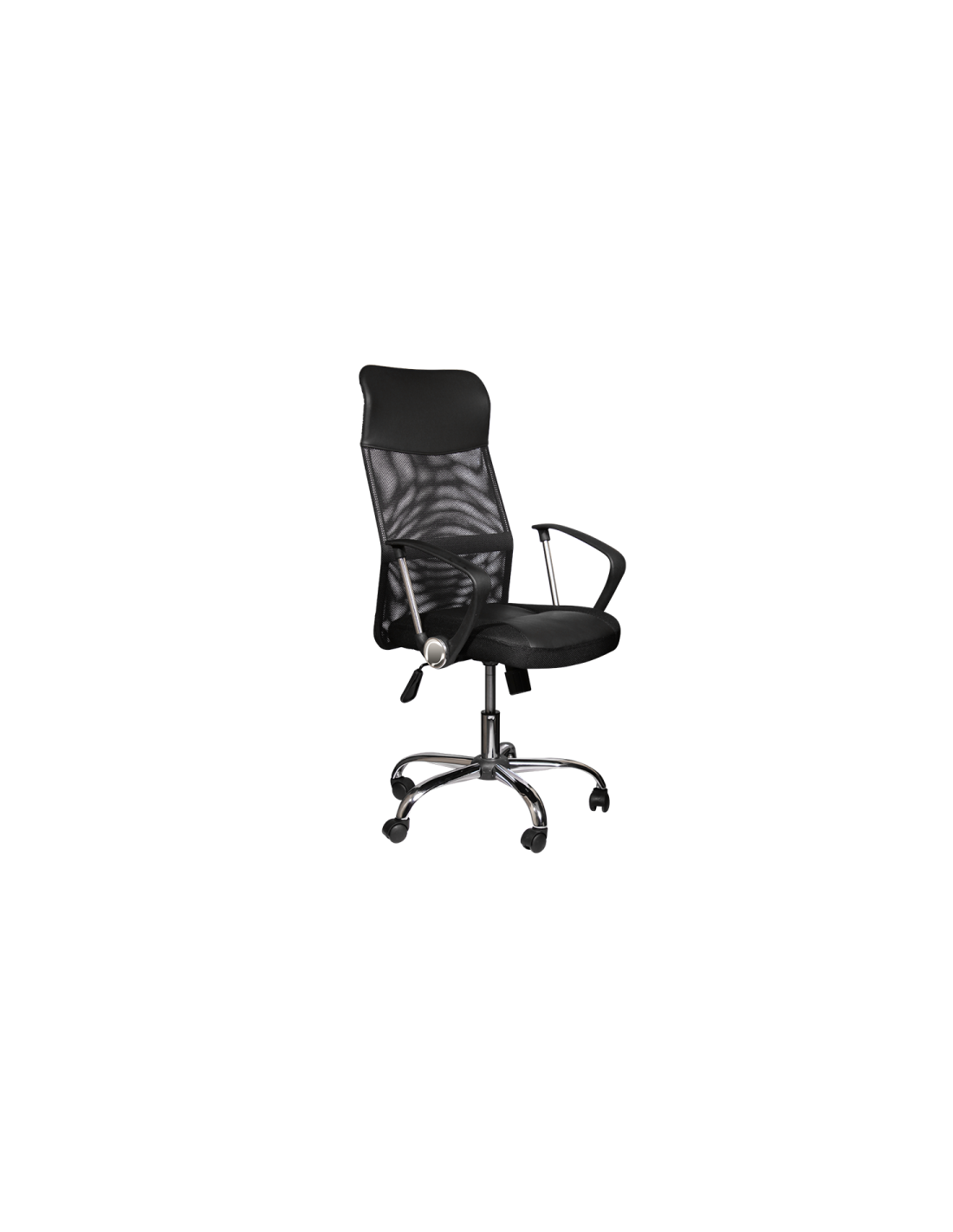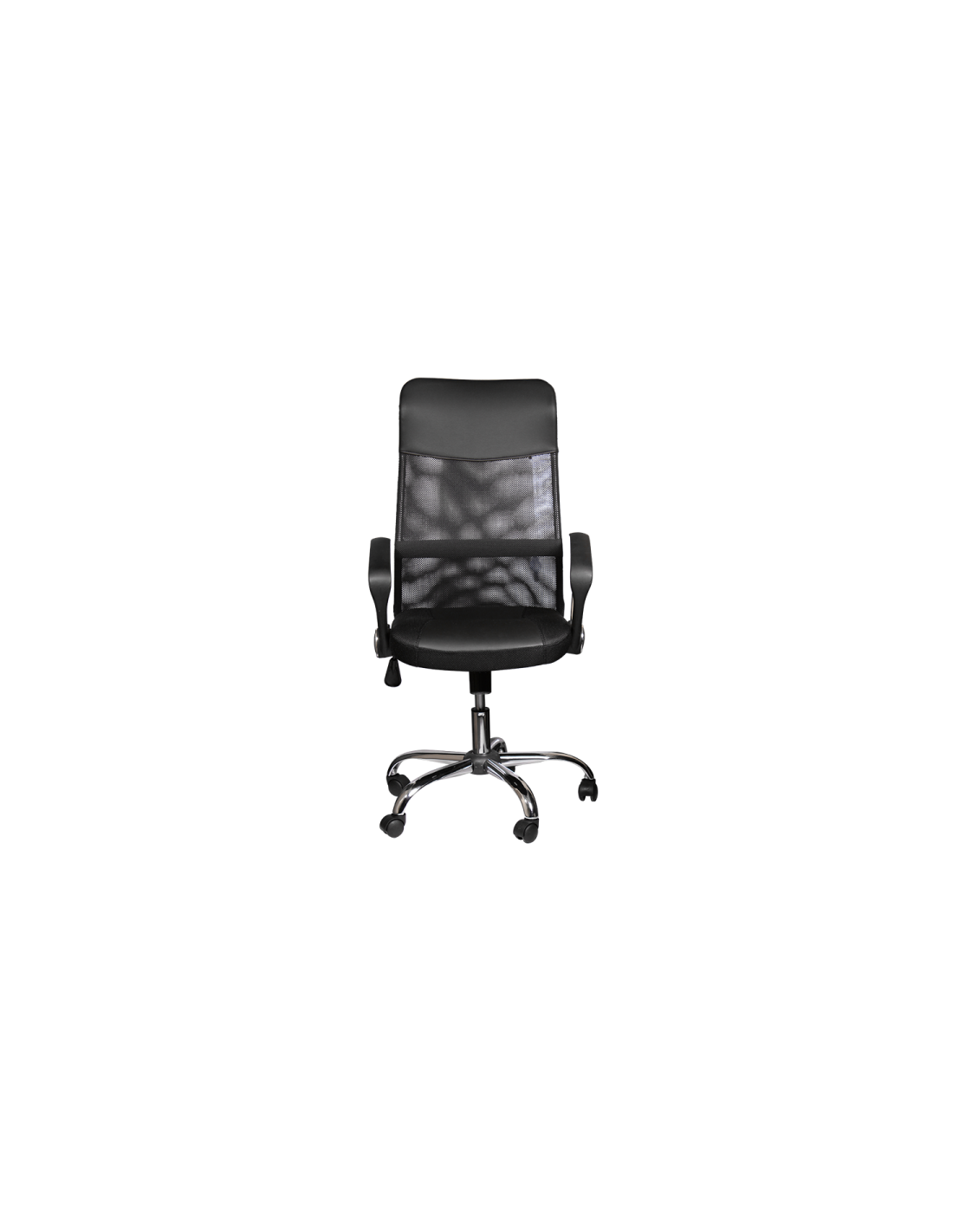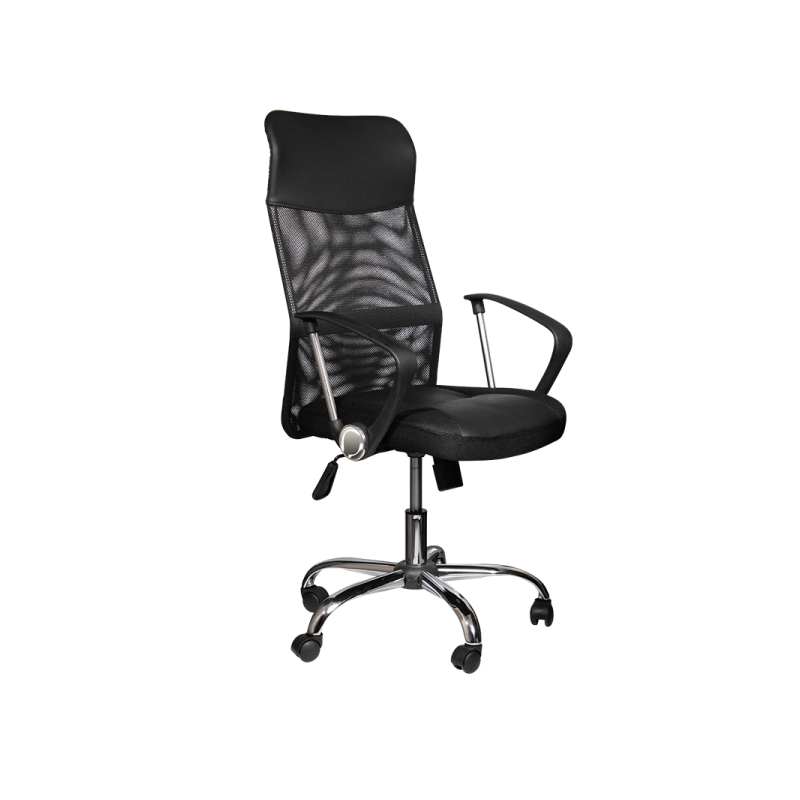 Президентският офис стол Carmen 6590-1 има модерно, стилно излъчване и комфортни седалка и облегалка. Дизайнът му съчетава комбинация от различни материали – здрава текстилна мрежа, еко кожа, полипропилен и хром. Столът е с регулируема височина, а за допълнително удобство в основата му е вграден и регулируем люлеещ механизъм.