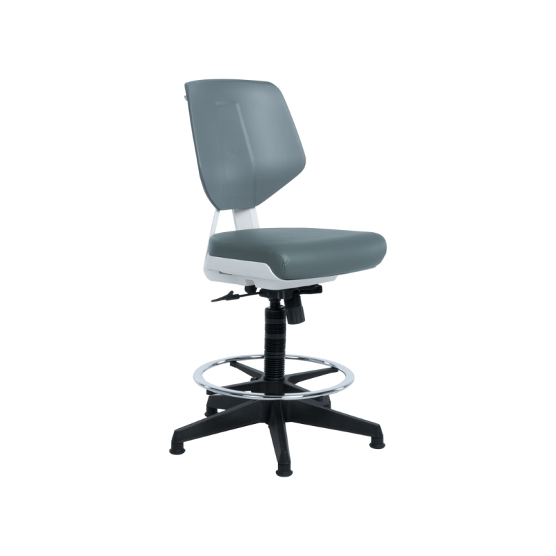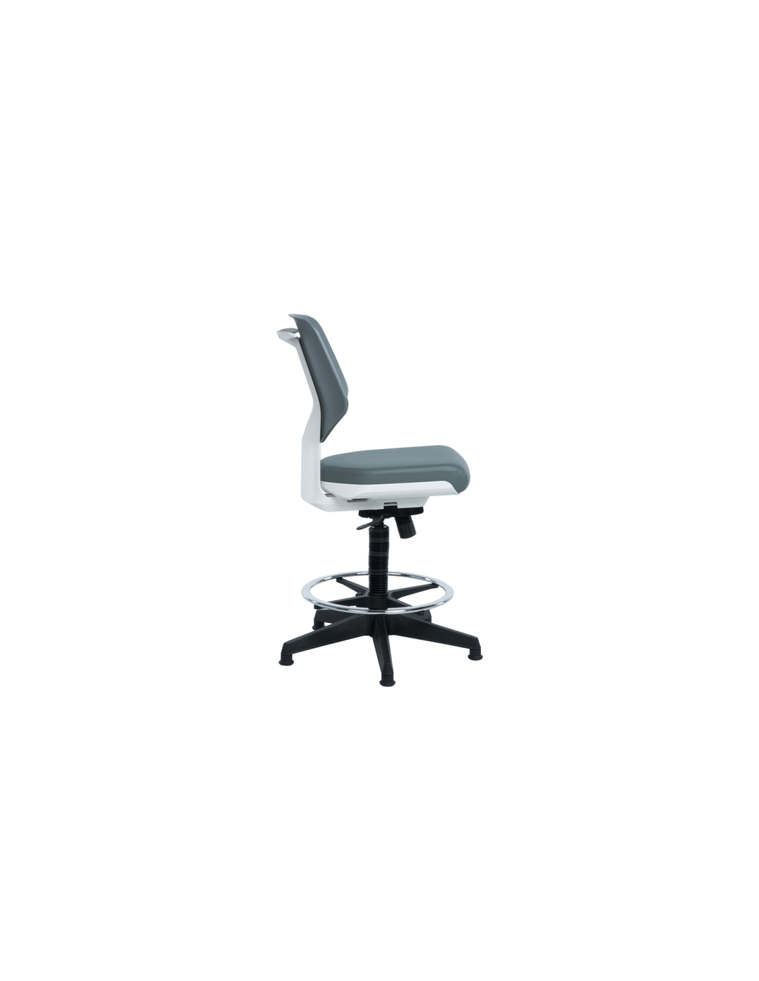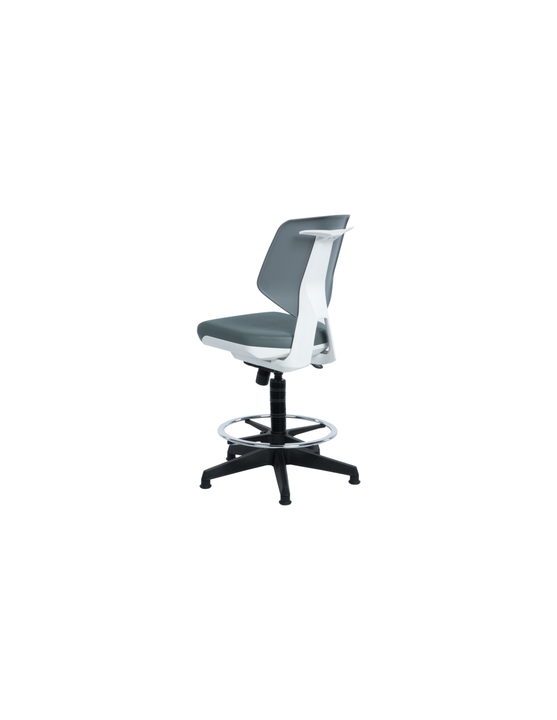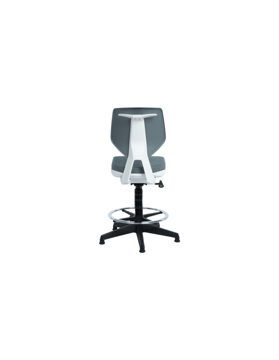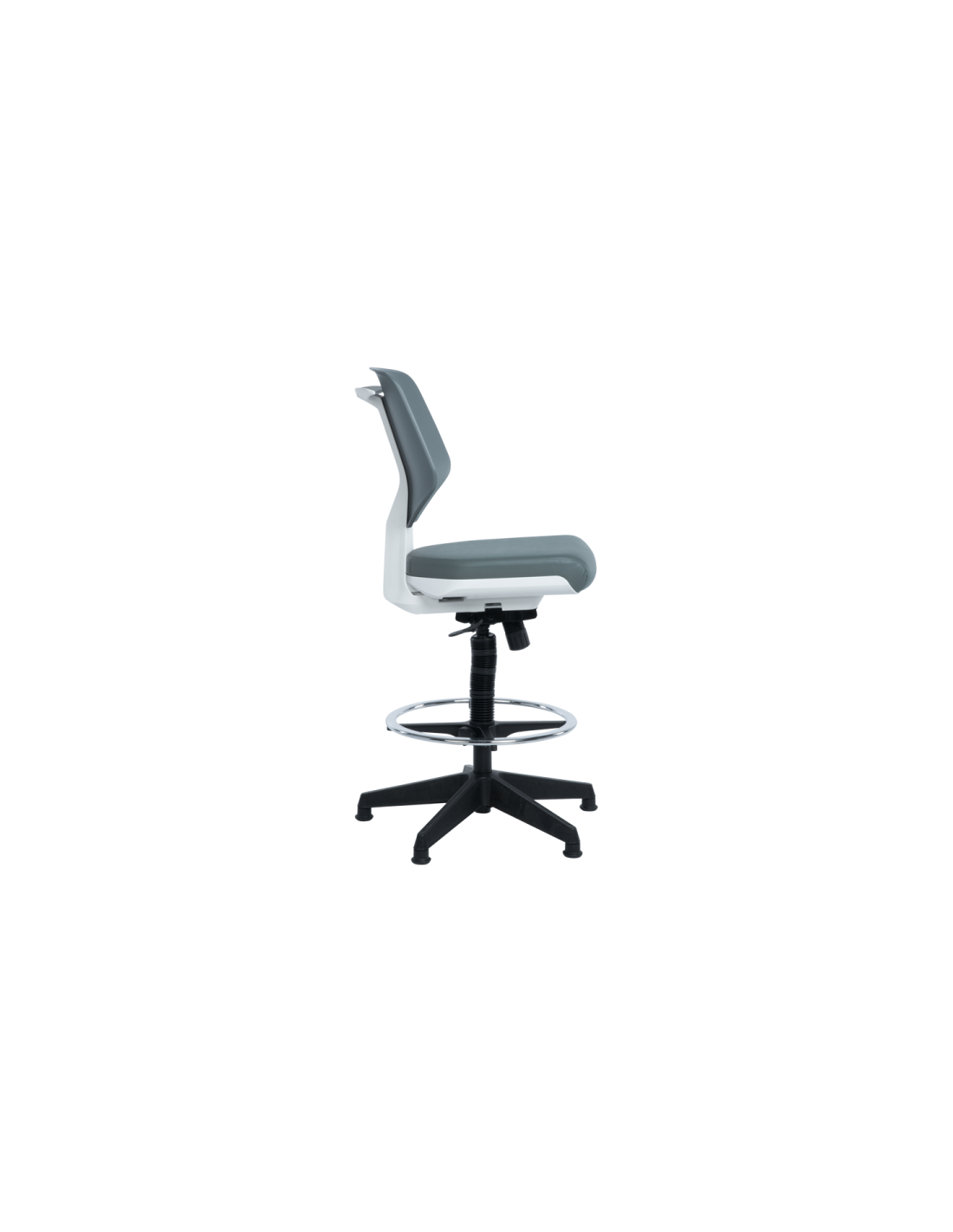 Регулируема поставка за крака В основата на високия работен офис стол LAB е добавен ринг за поставяне на краката. За максимално удобство неговата височина може да бъде регулирана чрез въртящия механизъм от вътрешната му страна. Развийте го и преместете нагоре или надолу стъпенката, след което завъртете обратно, за да я фиксирате в желаната позиция. |