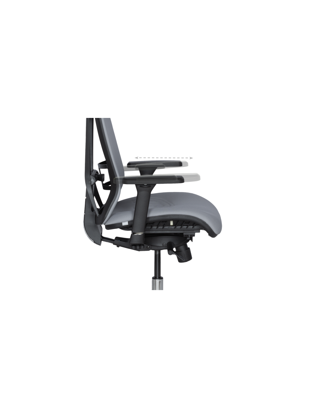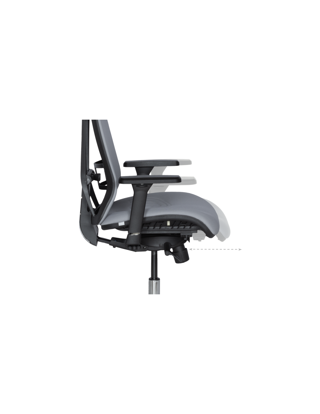 Тази важна функция ви позволява да настроите стола така, че да пасне идеално на тялото ви и да осигури максимален комфорт. Като общо правило, когато седите на стола, краката ви трябва да са стъпили равномерно на пода, а коленете ви да са свити под ъгъл от 90 градуса. С помощта на слайд миеханизъм от лявата страна под седалката променяйте дълбочината в диапазон от 49 до 54 см, докато не откриете подходящата за вас позиция. Правилното регулиране на дълбочината на седалката може да помогне за намаляване на напрежението в гърба, коленете и краката, както и да подобри кръвообращението. |