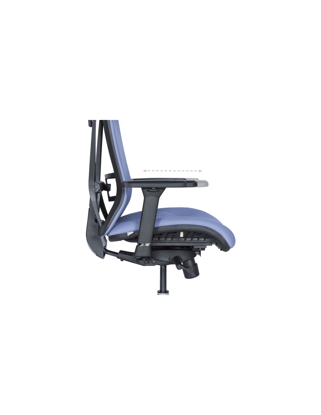 Тази важна функция ви позволява да настроите стола така, че да пасне идеално на тялото ви и да осигури максимален комфорт. Като общо правило, когато седите на стола, краката ви трябва да са стъпили равномерно на пода, а коленете ви да са свити под ъгъл от 90 градуса. С помощта на слайд миеханизъм от лявата страна под седалката променяйте дълбочината в диапазон от 49 до 54 см, докато не откриете подходящата за вас позиция. Правилното регулиране на дълбочината на седалката може да помогне за намаляване на напрежението в гърба, коленете и краката, както и да подобри кръвообращението. |