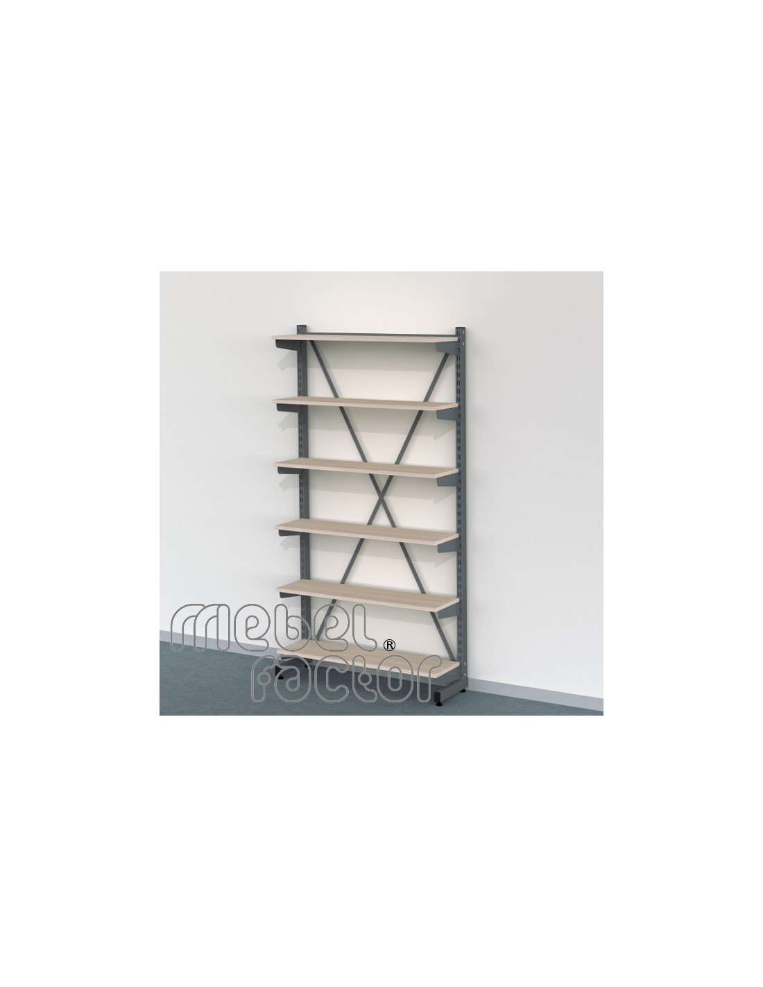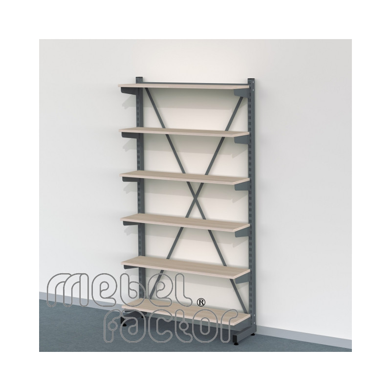 Стелаж СМАРТ 40 с шест рафта 90х25см. Комплекта съдържа следните елементи: -Комплект L-крака, 90х27хН180см. -Рафт 90х25см с долни носачи - 6 броя Товаримост на всеки рафт до 40кг. Регулиране на рафтовете по височина със стъпка 4см. Декори на ламинирано ПДЧ от фирмения картел. Полимерно, прахово покритие в цветове по RAL. Произведено в България.