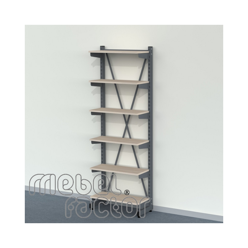 Стелаж СМАРТ 40 с шест рафта 60х25см. Комплекта съдържа следните елементи: -Комплект L-крака, 60х27хН180см. -Рафт 60х25см с долни носачи - 6 броя Разстояние между рафтовете 30см. Товаримост на всеки рафт до 40кг. Регулиране на рафтовете по височина със стъпка 4см. Декори на ламинирано ПДЧ от фирмения картел. Полимерно, прахово покритие в цветове по RAL. Произведено в България.