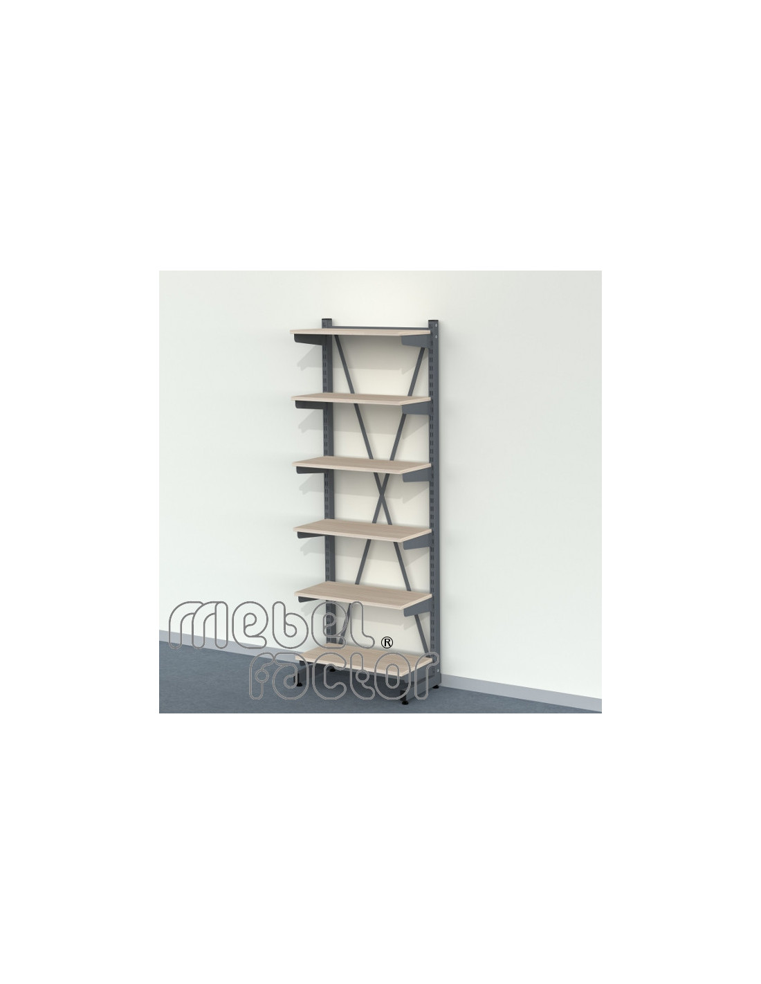 Стелаж СМАРТ 40 с шест рафта 60х30см. Комплекта съдържа следните елементи: -Комплект L-крака, 60х32хН180см. -Рафт 60х30см с долни носачи - 6 броя Товаримост на всеки рафт до 40кг. Регулиране на рафтовете по височина със стъпка 4см. Декори на ламинирано ПДЧ от фирмения картел. Полимерно, прахово покритие в цветове по RAL. Произведено в България.
