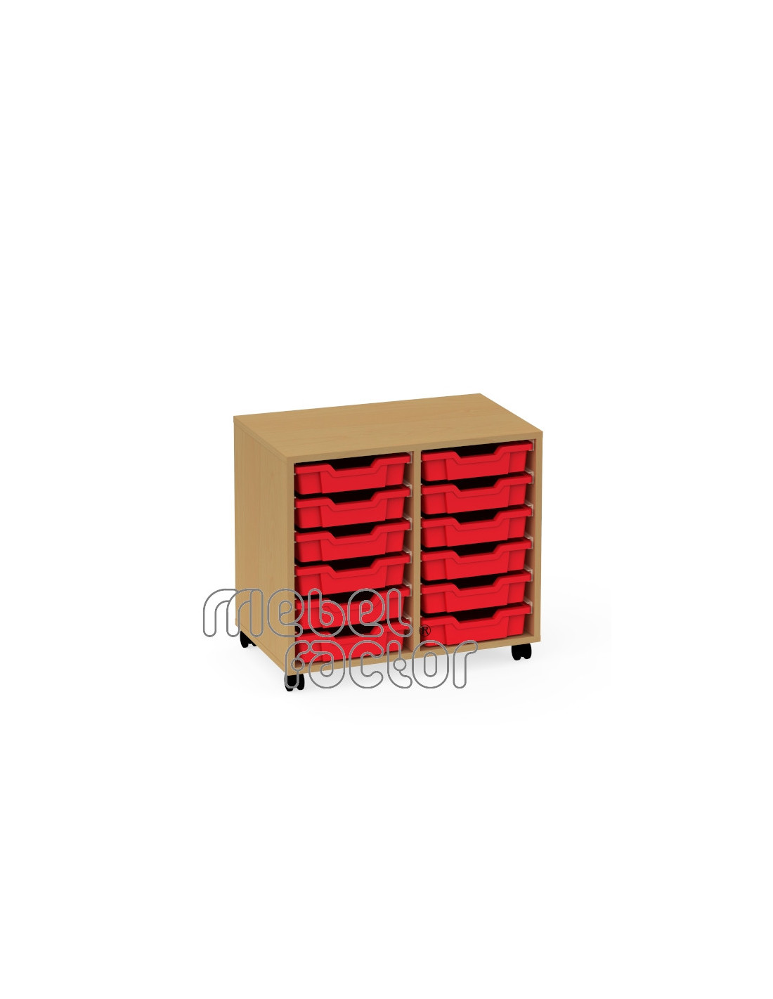 Подвижен двоен шкаф с 12 контейнера Gratnells Корпус от 18 мм ламинирано ПДЧ с кант 0,5мм Стабилна конструкция с плътен гръб и колела. Декори на ламинирано ПДЧ от фирмения картел. Шкафа съдържа: 12 броя плитък контейнер F1 Произведено в България.