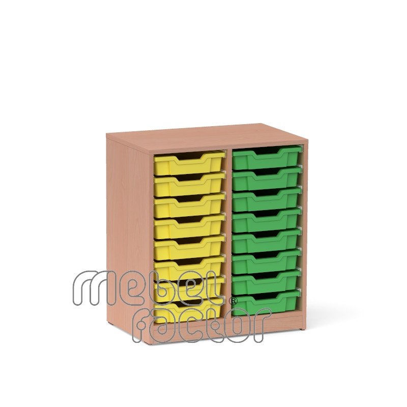 Двоен шкаф с 16 контейнера Gratnells Корпус от 18 мм ламинирано ПДЧ с кант 0,5мм Стабилна конструкция с плътен гръб. Декори на ламинирано ПДЧ от фирмения картел. Шкафа съдържа: 16 броя плитък контейнер F1 Произведено в България.