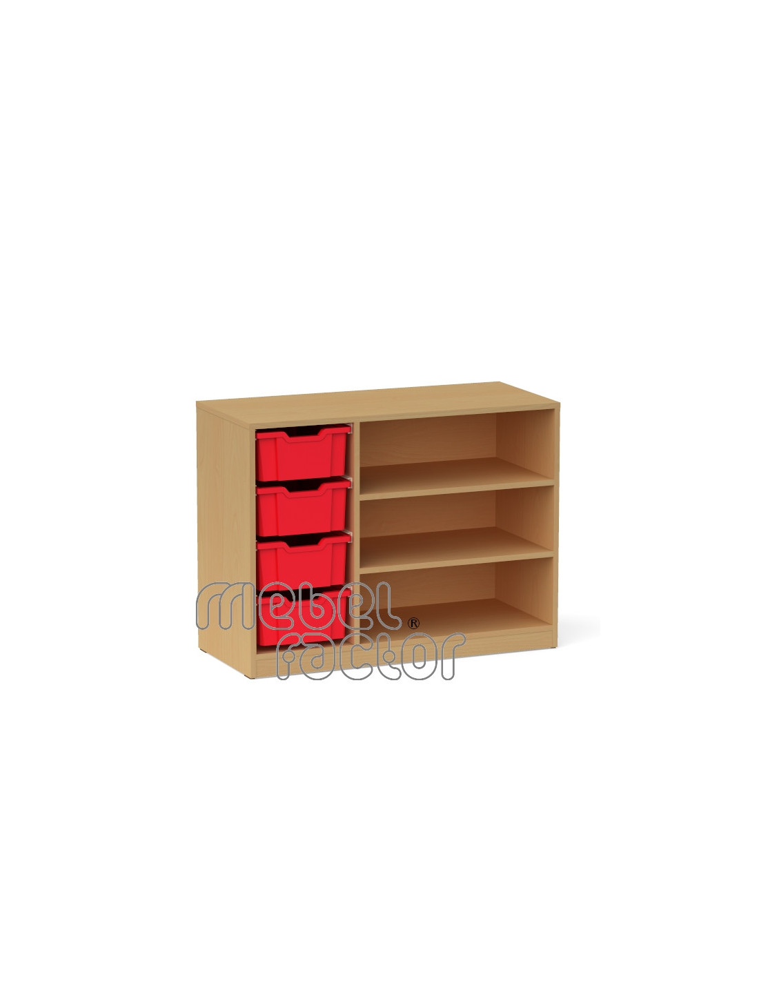 Троен шкаф с 4 контейнера Gratnells Корпус от 18 мм ламинирано ПДЧ с кант 0,5мм Стабилна конструкция с плътен гръб. Декори на ламинирано ПДЧ от фирмения картел. Шкафа съдържа: 4 броя среден контейнер F2 Произведено в България.