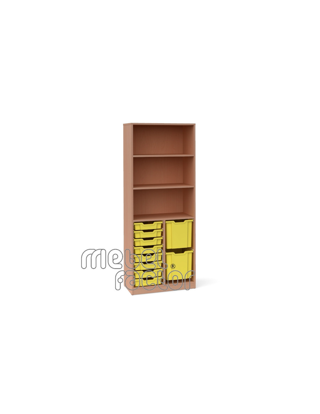 Двоен шкаф с 10 контейнера Gratnells Корпус от 18 мм ламинирано ПДЧ с кант 0,5мм Възможност за монтаж на врати. Стабилна конструкция с плътен гръб. Декори на ламинирано ПДЧ от фирмения картел. Шкафа съдържа: 8 броя плитък контейнер F1 2 броя джъмбо контейнер F3 Произведено в България.