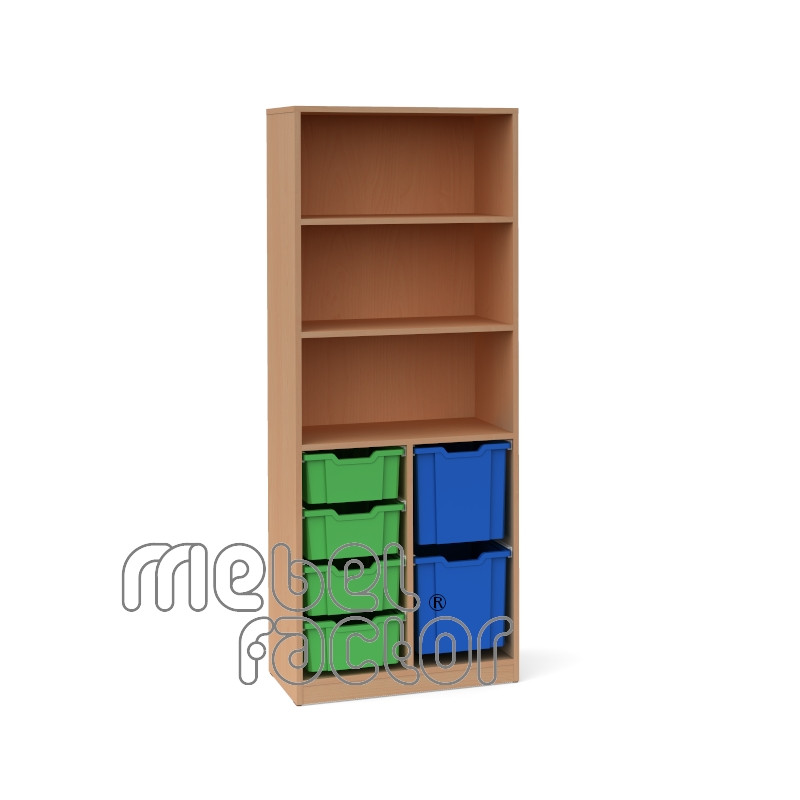 Двоен шкаф с 6 контейнера Gratnells Корпус от 18 мм ламинирано ПДЧ с кант 0,5мм Възможност за монтаж на врати. Стабилна конструкция с плътен гръб. Декори на ламинирано ПДЧ от фирмения картел. Шкафа съдържа: 4 броя среден контейнер F2 2 броя джъмбо контейнер F3 Произведено в България.