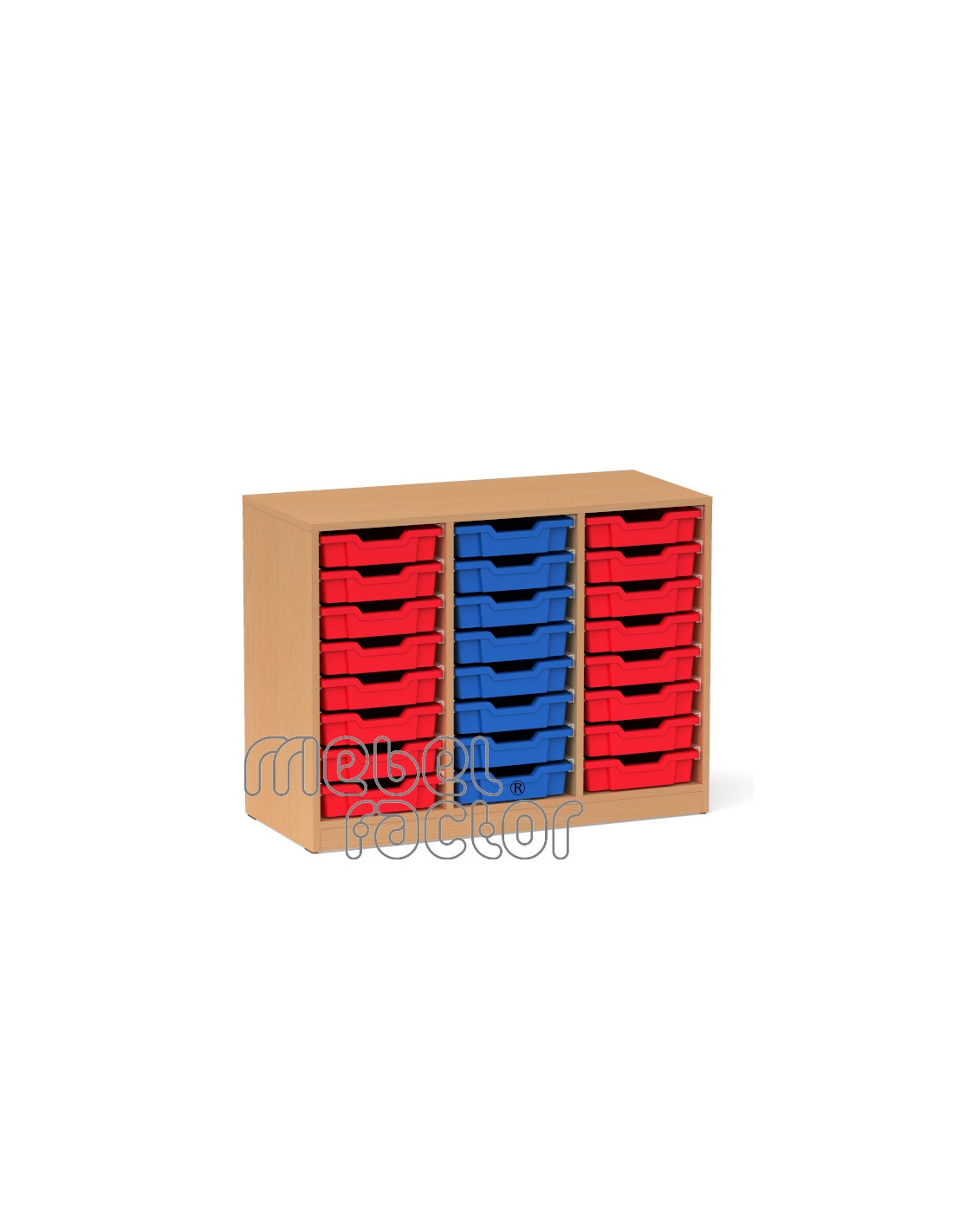 Троен шкаф с 24 контейнера Gratnells Корпус от 18 мм ламинирано ПДЧ с кант 0,5мм Стабилна конструкция с плътен гръб. Декори на ламинирано ПДЧ от фирмения картел. Шкафа съдържа: 24 броя плитък контейнер F1 Произведено в България.