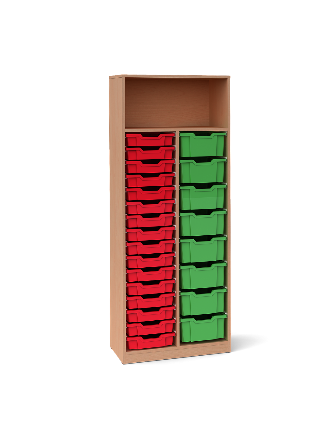 Двоен шкаф с 24 контейнера Gratnells Корпус от 18 мм ламинирано ПДЧ с кант 0,5мм Възможност за монтаж на врати. Стабилна конструкция с плътен гръб. Декори на ламинирано ПДЧ от фирмения картел. Шкафа съдържа: 16 броя плитък контейнер F1 8 броя среден контейнер F2 Произведено в България.