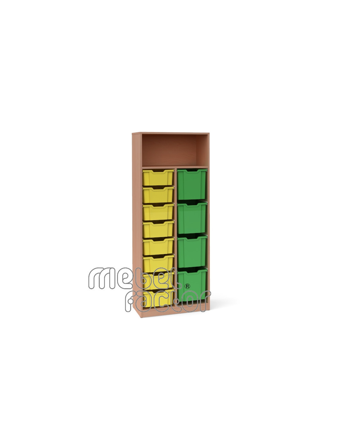 Двоен шкаф с 12 контейнера Gratnells Корпус от 18 мм ламинирано ПДЧ с кант 0,5мм Възможност за монтаж на врати. Стабилна конструкция с плътен гръб. Декори на ламинирано ПДЧ от фирмения картел. Шкафа съдържа: 8 броя среден контейнер F2 4 броя джъмбо контейнер F3 Произведено в България.