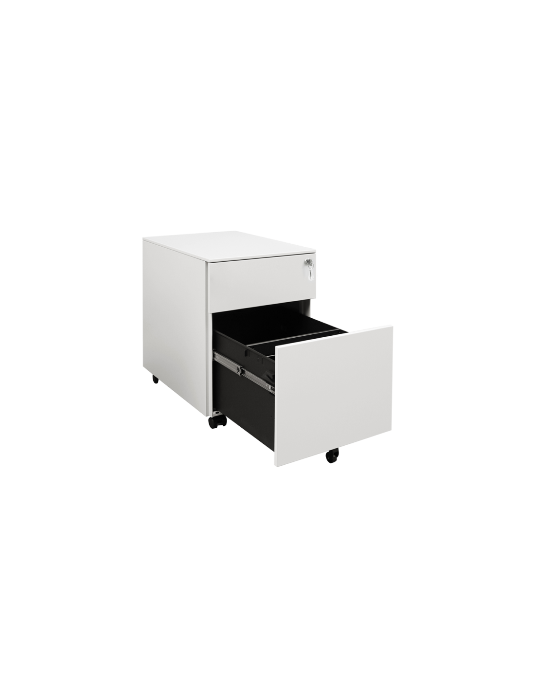 Офис контейнер Carmen CR-1816 ZH е с 2 чекмеджета, като долното е предназначено за висящи папки, а горното – за офис консумативи. Разполага с централно заключване с ключ, което осигурява сигурност на съдържанието. Благодарение на колелцата, се мести лесно и се вписва отлично под бюра в работна среда. Компактният му размер го прави практично решение за всеки офис. Моделът се предлага сглобен, с което отпада нуждата от монтаж.