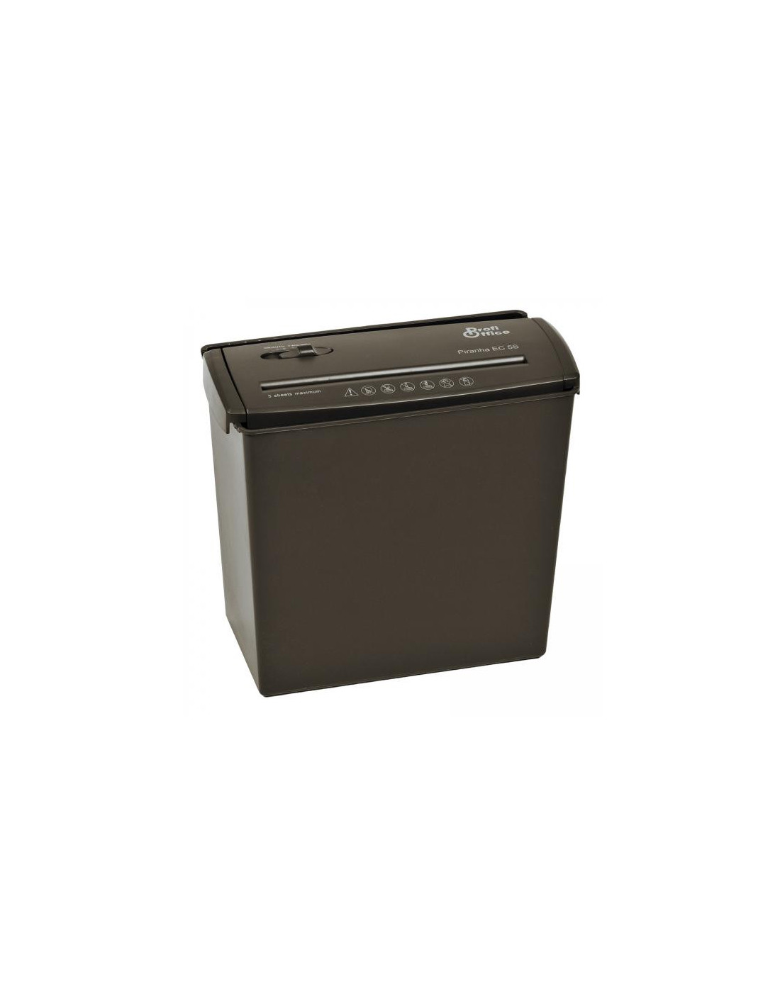 Шредерът за документи унищожава до 5 листа с грамаж 80 g/m², телбодирани или не.