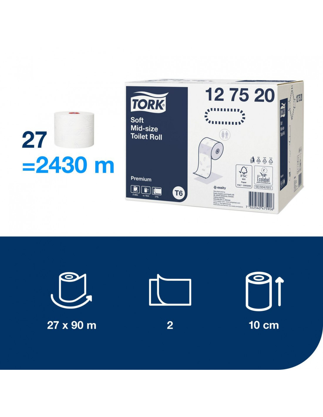 Тоалетна хартия на ролка TORK Roll Compact T6, 27 бр. в кашон 010674