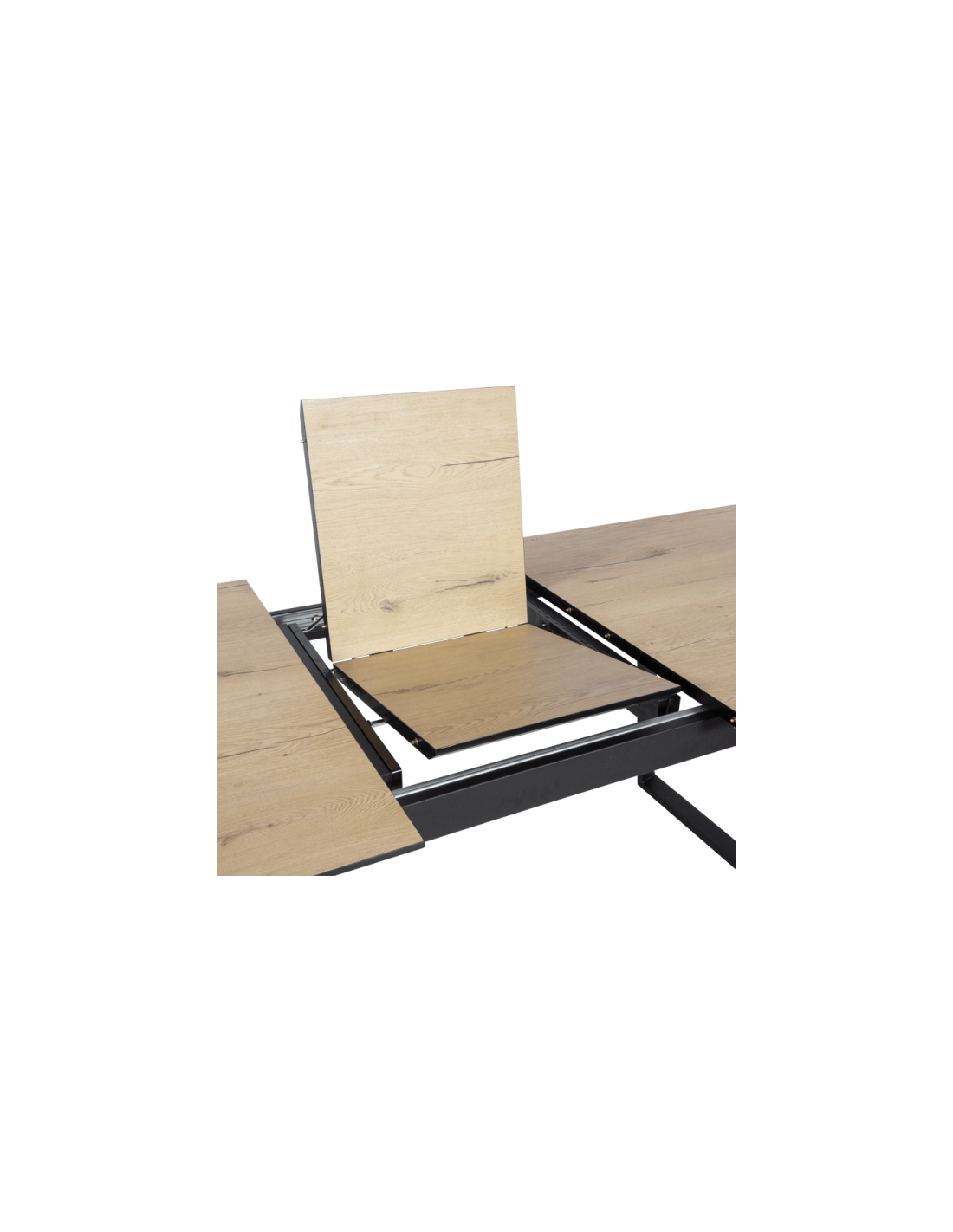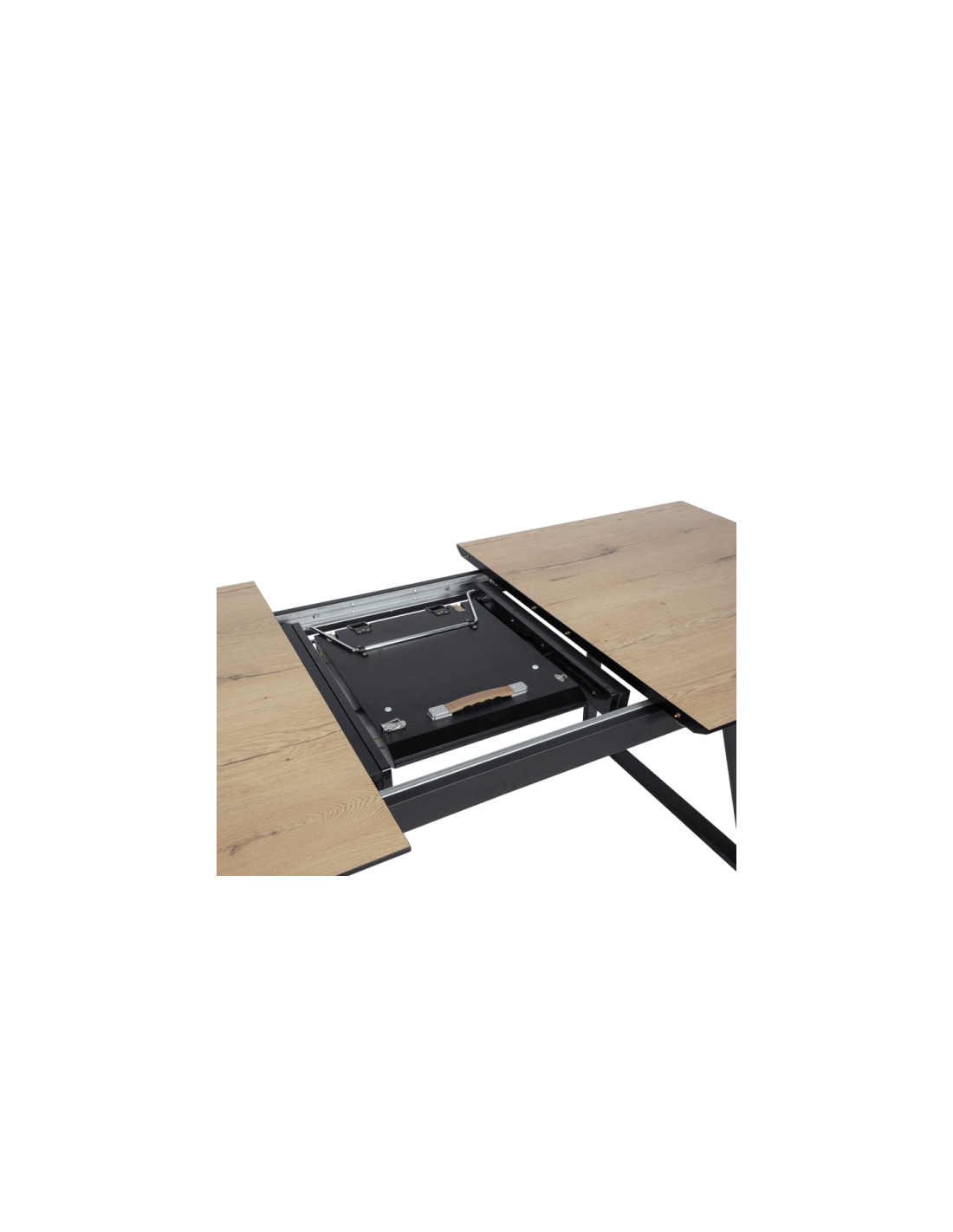 Удобен механизъм за разтягане Ако ви посетят неочаквани гости, за секунди може да увеличите полезната площ на любимата си маса. Моделът се разтяга изключително лесно, като двете части се изтеглят встрани. Под тях е позиционирана, сгъната на две дъска с удобна дръжка, която се изтегля с едно движение. Практично и бързо, нали? |