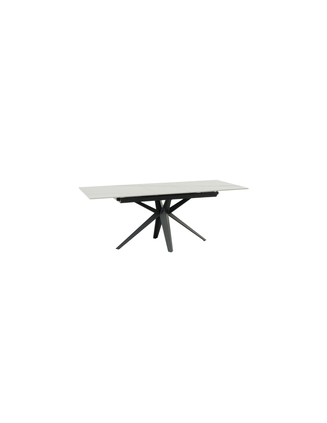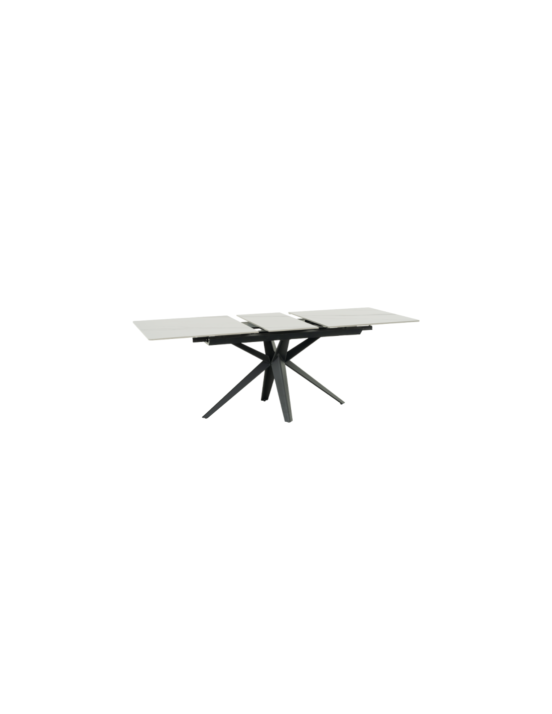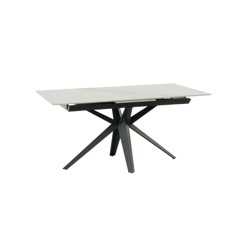Мебел, в която ще се влюбите от пръв поглед Разтегателна трапезна маса ZORY е създадена да бъде израз на съвременна елегантност и функционалност. Със своята изчистена и стилна визия, тя е перфектният акцент за всяко модерно жилище. Плотът от керамика, с дебелина 12 мм, придава на масата изискан и съвременен вид. Основата на модела е изработена от метал с интересен дизайн, наподобяващ звезда, който не само допринася за стабилността, но и добавя визуален ефект. Размерите на масата в стандартно положение са 160 см дължина, 90 см ширина и 76 см височина, което я прави идеална както за компактни, така и за по-големи пространства. |