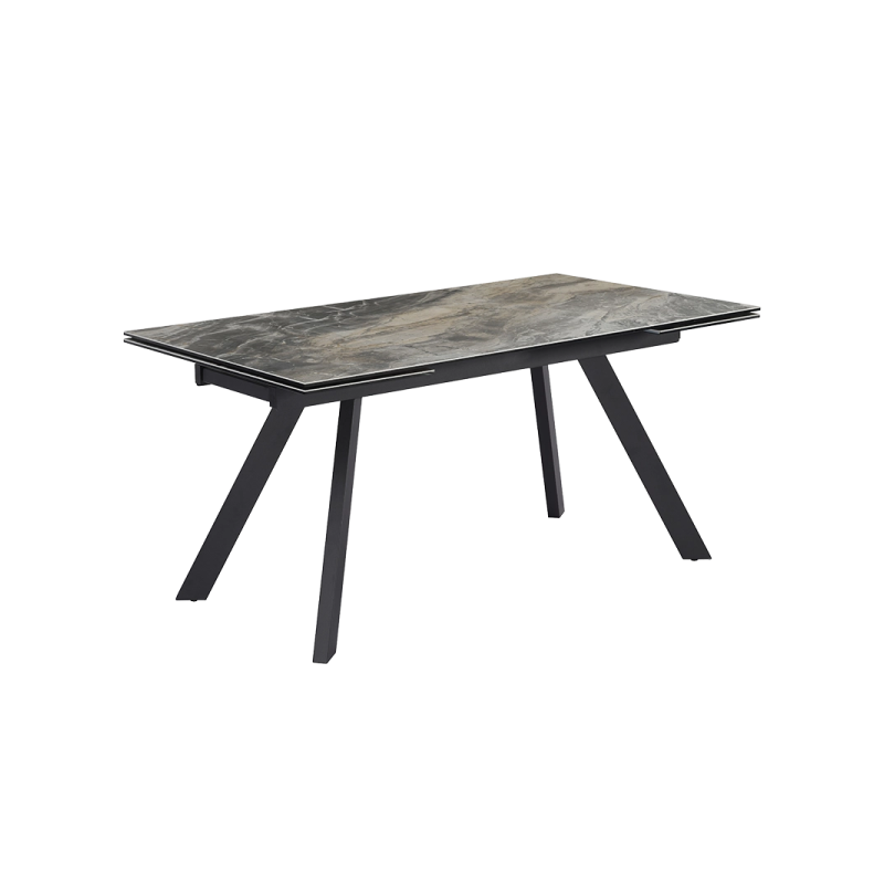 Разтегателна трапезна маса BARCIN се отличава с изчистен дизайн и стабилна конструкция, подходяща за всяка модерна трапезария. Плотът е изработен от висококачествено стъкло и керамика, съчетани в елегантен сив и кафяв нюанс. Моделът предлага възможност за разтягане с два допълнителни плота по 40 см, които могат да се разтягат индивидуално от двете страни, осигурявайки гъвкавост и удобство при посрещане на повече гости. Благодарение на тях, масата достига от 160 см до 240 см дължина.