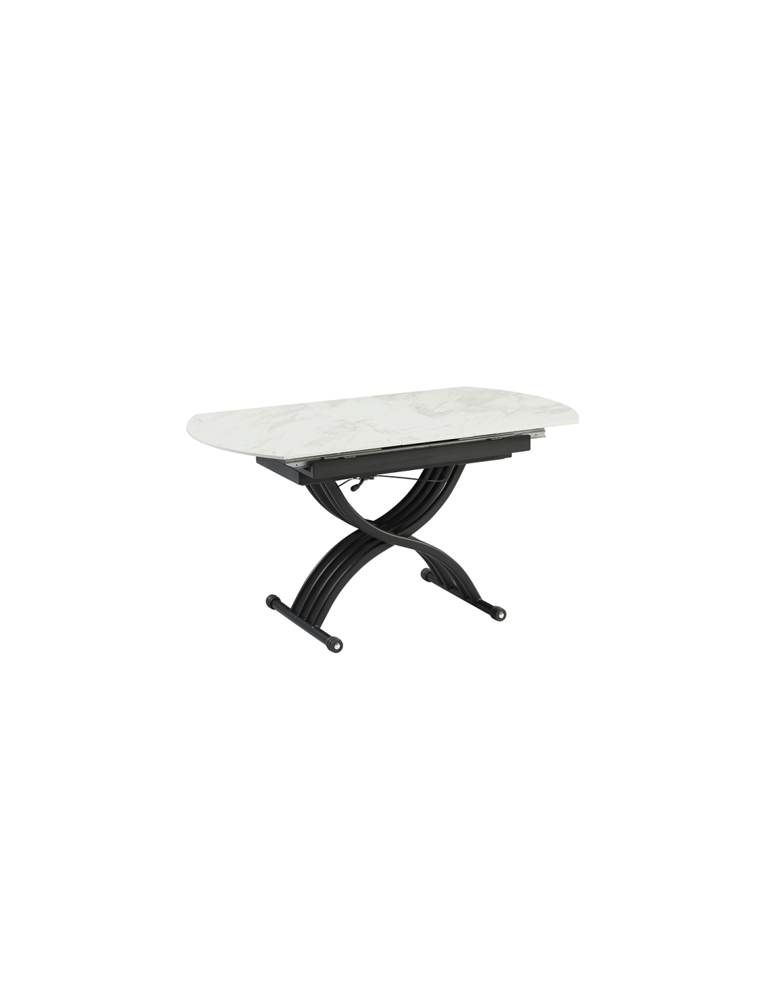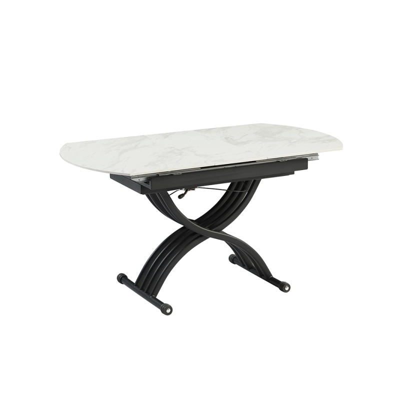 Масата LESKO е перфектният избор за тези, които търсят съчетание между функционалност и елегантен дизайн. Тя разполага с иновативен повдигащ механизъм, който позволява лесно регулиране на височината от 38 до 76 см, превръщайки я от холна в трапезна маса с едно движение. Разтегателният механизъм с модерна слайд система разширява плота от 120 до 150 см, като запазва широчината от 80 см. Керамичният плот осигурява изключителна здравина и стабилност, а съвременният му вид добавя усещане за лукс и уникален стил към вашия интериор. С LESKO лесно преминавате от сутрешното кафе към обяд или вечеря с приятели и семейството – всичко в един изискан и практичен продукт.