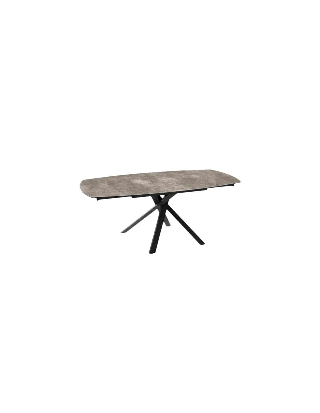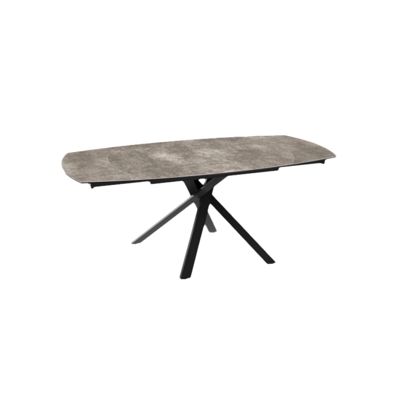 Разтегателната трапезна маса GOLOLIN X се отличава с изискания си плот, изработен от комбинация от закалено стъкло и керамика, който впечатлява с фини текстури и стилен бежов оттенък. Масата разполага с иновативен механизъм, при който разширението се осъществява чрез завъртане на основния плот, разкривайки двата допълнителни плота и трансформирайки масата от 120 см на 180 см. Тази интелигентна функция осигурява лесно и плавно разтягане, добавяйки допълнително пространство за вашите гости. Основата на GOLOLIN X е изработена от праховобоядисан метал в черен цвят, който създава контраст и допринася за модерния вид на масата. Динамичният дизайн на краката с кръстосана форма осигурява стабилност и придава визуален акцент, който подчертава съвременната естетика на модела. GOLOLIN X съчетава елегантност и функционалност, което я прави идеалният избор за всеки модерен дом.
