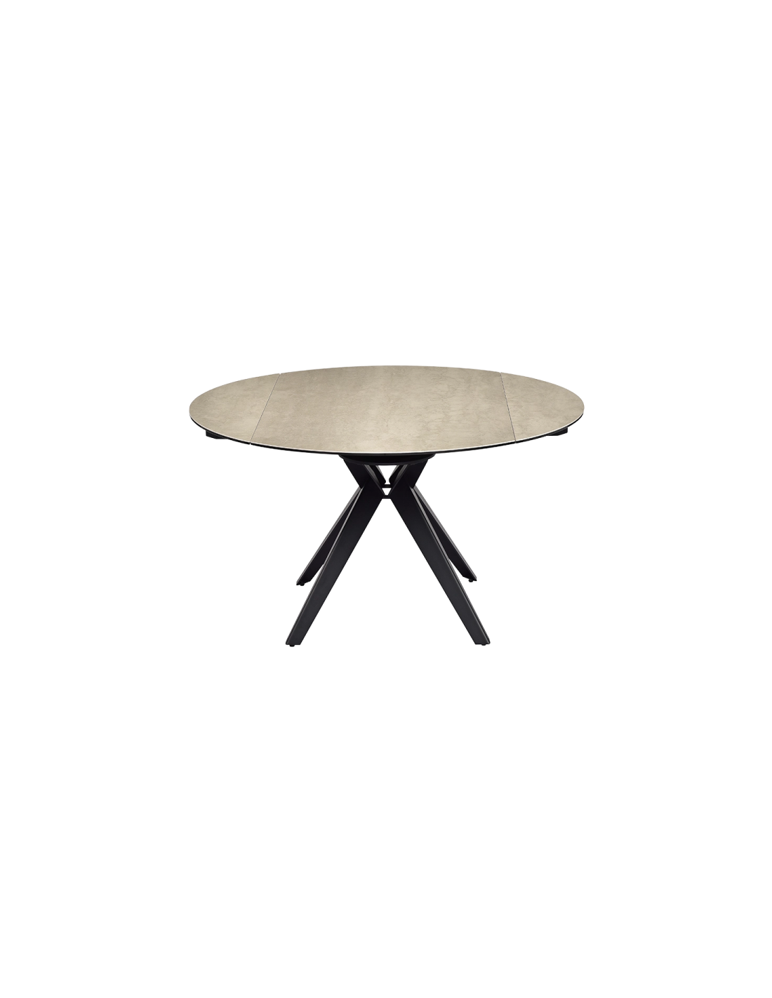 Трапезната маса KATOWICE впечатлява със своя елегантен плот, изработен от комбинация от закалено стъкло и висококачествена керамика, която придава усещане за изтънченост и лукс. Моделът разполага с иновативен механизъм, при който разширението се осъществява чрез завъртане на основния плот. Този интелигентен дизайн позволява плавно разтягане и разкриване на допълнителните плотове, превръщайки KATOWICE в стилна кръгла маса с диаметър 135 см. Здравата основа в черен цвят със съвременен геометричен дизайн осигурява стабилност и визуален акцент във всяка модерна трапезария. KATOWICE съчетава елегантност и функционалност, създавайки перфектното решение за вашия дом.