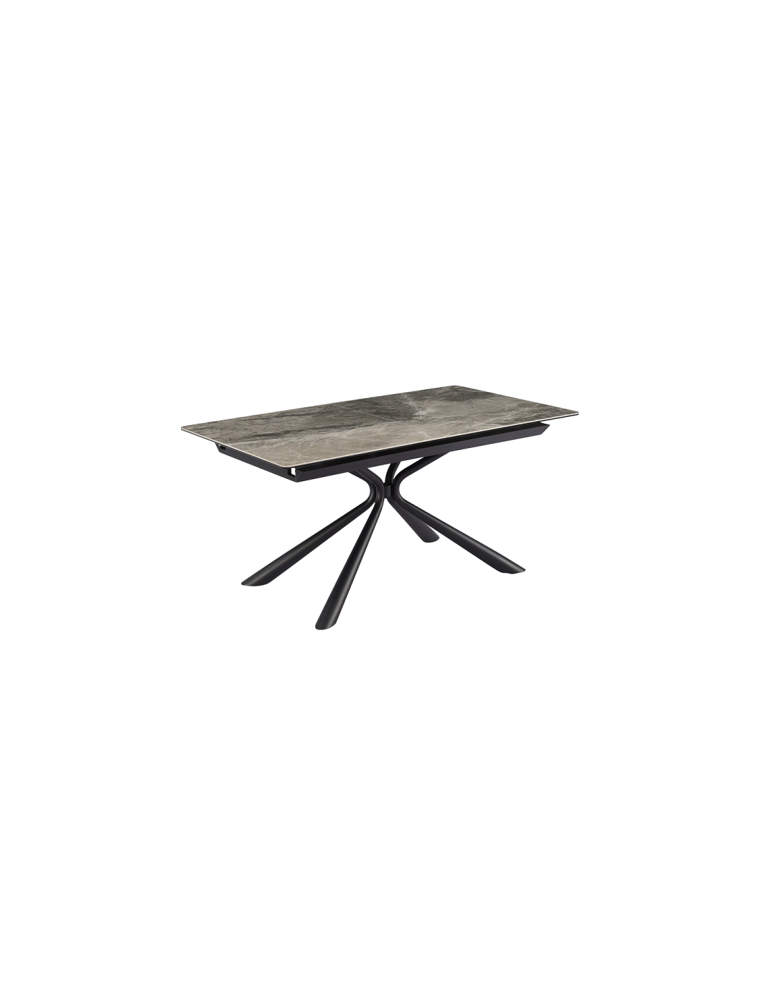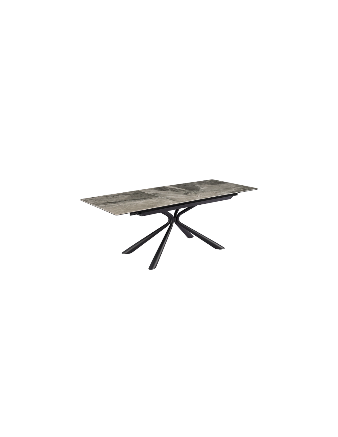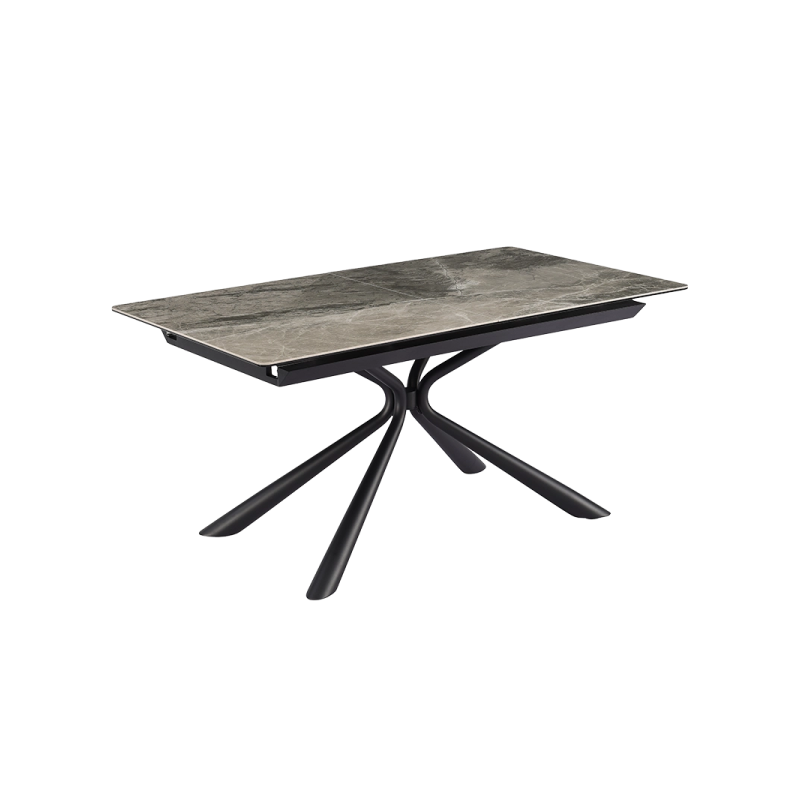 Трапезната маса KETY е изтънчено съчетание на модерна естетика и функционалност. Плотът е изработен от закалено стъкло в комбинация с керамика, като гланцираният завършек с фини мраморни нюанси придава елегантност и лукс в интериора. Общата дебелина от 12 мм осигурява здравина и стабилност, докато основата от праховобоядисан метал в изискан черен цвят се отличава с минималистичен профил и изчистени линии. Благодарение на иновативния слайд механизъм, масата се разтяга от 160 см до 200 см с лекота, осигурявайки достатъчно пространство за вашите специални моменти.