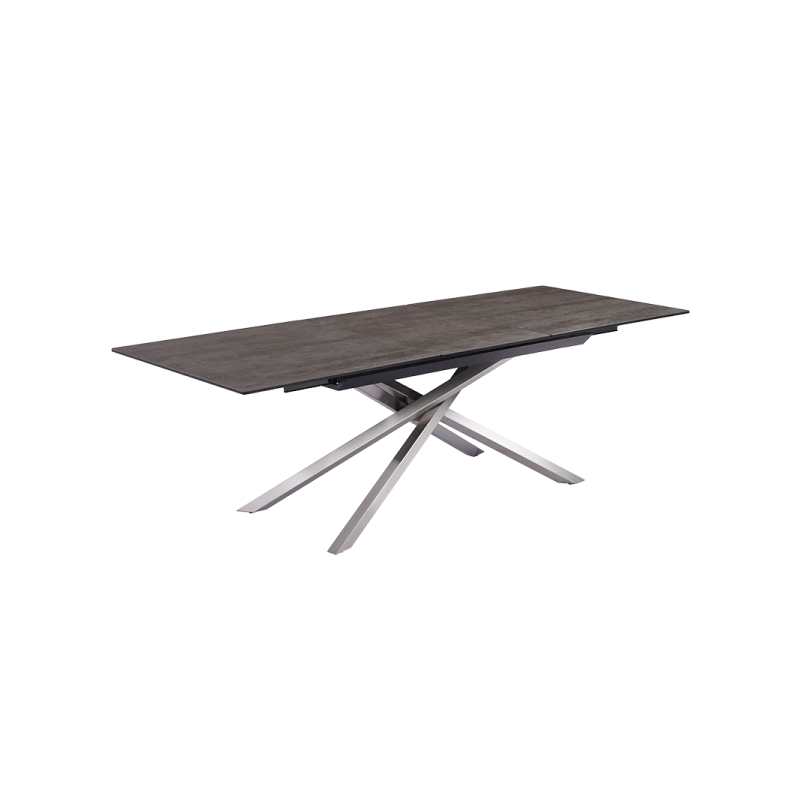 Трапезната маса KIKOL е впечатляващ символ на модерния стил и прецизност. Плотът от 12 мм, съчетаващ закалено стъкло и висококачествена испанска керамика, привлича с топлия си кафяв цвят и естествените текстури, които носят усещане за изисканост и уют. Основата, изработена от неръждаема стомана с инокс финиш, впечатлява с геометрична елегантност и създава усещане за лекота, като същевременно гарантира изключителна стабилност. Благодарение на иновативния слайд механизъм, KIKOL се разтяга плавно от 180 см до 230 см, предоставяйки пространство за незабравими семейни вечери и стилни събирания. Хармоничните цветови контрасти и елегантният дизайн превръщат KIKOL в забележителен акцент за всеки модерен дом.