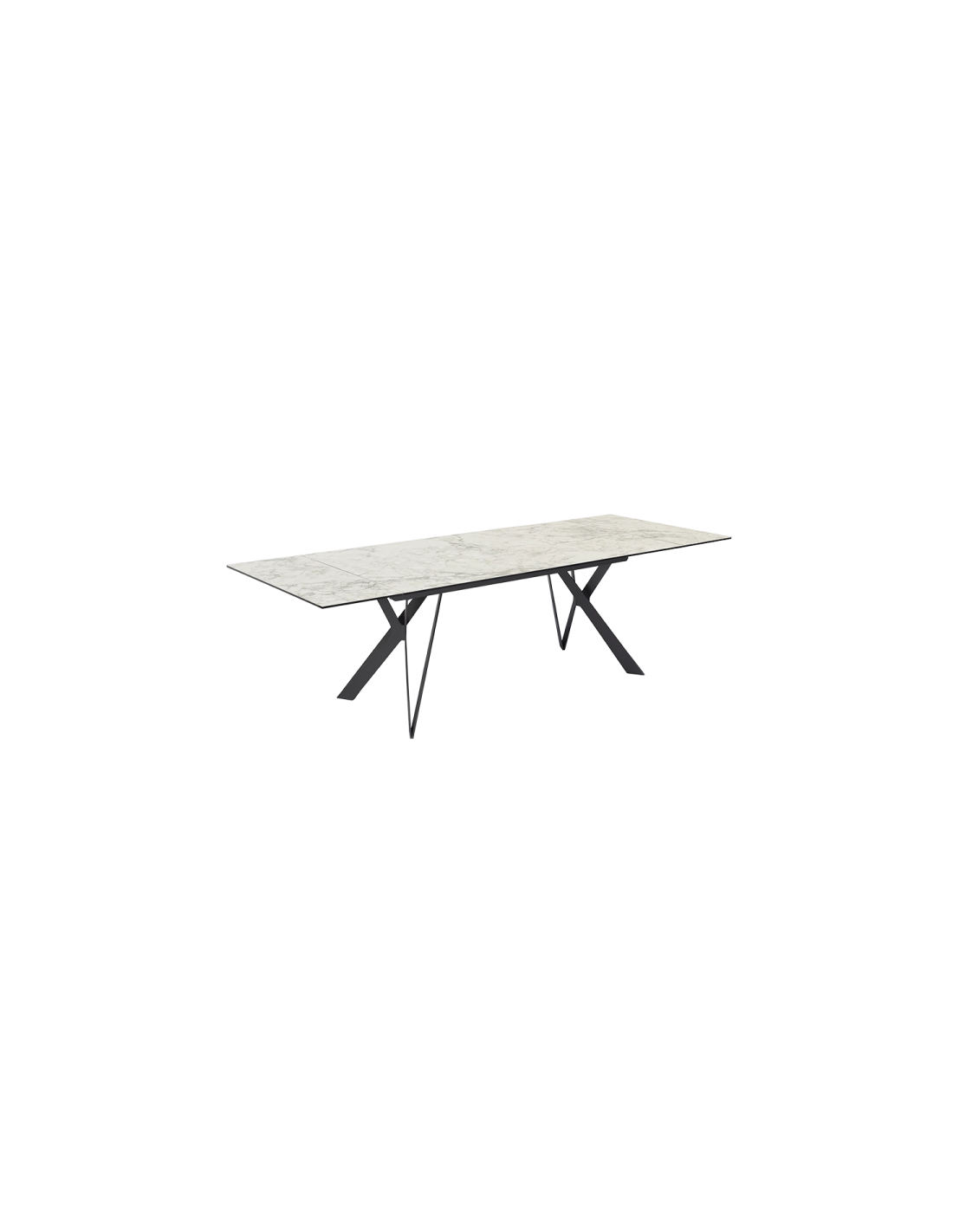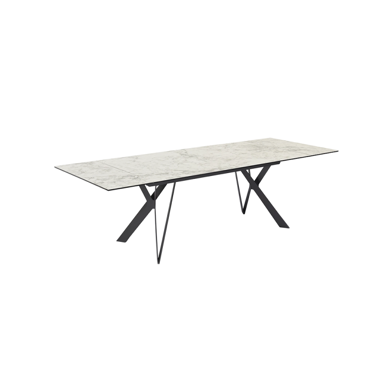 Модерен и елегантен дизайн Трапезна маса MARKI е изискано решение за съвременния дом, съчетаваща стил, функционалност и практичност. Плотът, изработен от висококачествена керамика и закалено стъкло с фина имитация на мрамор, излъчва лукс и устойчивост. Неговите изчистени и прави линии хармонично се съчетават с разчупените геометрични крака от прахово боядисан метал, които добавят модерен и авангарден акцент. Тази впечатляваща комбинация прави масата подходящ избор както за класически интериори, така и за минималистични пространства с индустриално излъчване. MARKI е проектирана с внимание към детайла, предлагайки както естетика, така и удобство. Благодарение на функцията си за разтягане, тя осигурява допълнително пространство, което я прави идеална за семейни вечери, празнични трапези или събирания с приятели. |