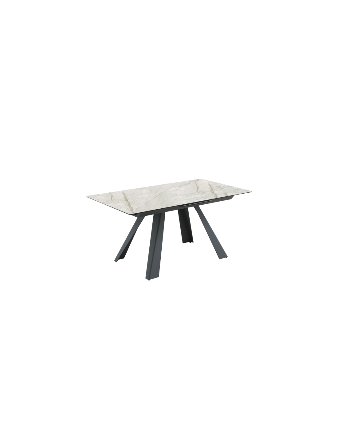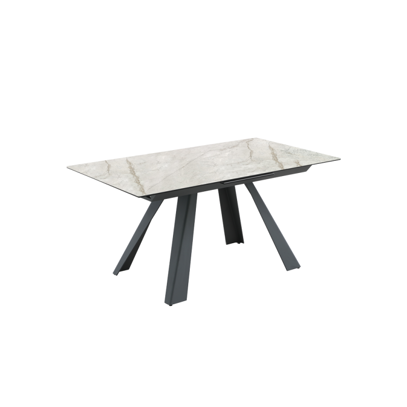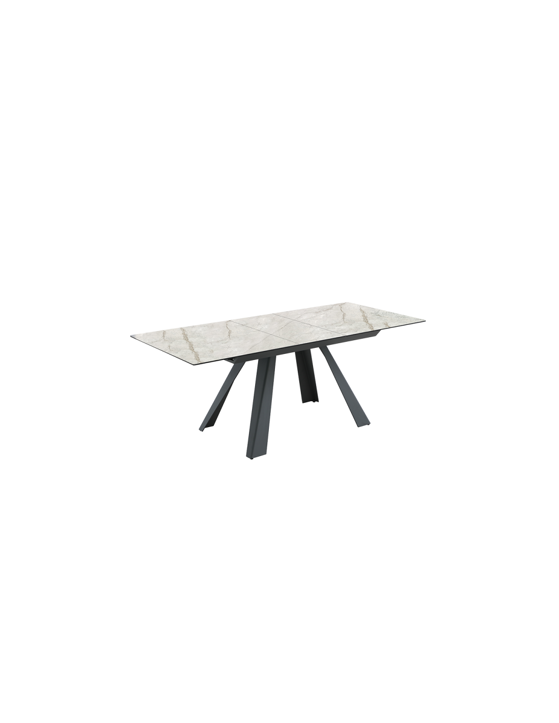Разтегателна трапезна маса LASK привлича с уникалния си дизайн и висококачествена изработка. Плотът, изработен от керамика и закалено стъкло, съчетава стил и устойчивост, предоставяйки елегантно решение за всяка трапезария. С дължина от 160 см, която може да бъде увеличена до 200 см благодарение на иновативния механизъм за разтягане, масата лесно се адаптира към вашите нужди и осигурява повече пространство за вашите гости. Здравата метална основа с праховобоядисан завършек допълва модерната визия и гарантира стабилност. С ширина 90 см, разтегателната трапезна маса LASK е идеалното съчетание от функционалност и изтънченост, създавайки уют и стил в дома ви.