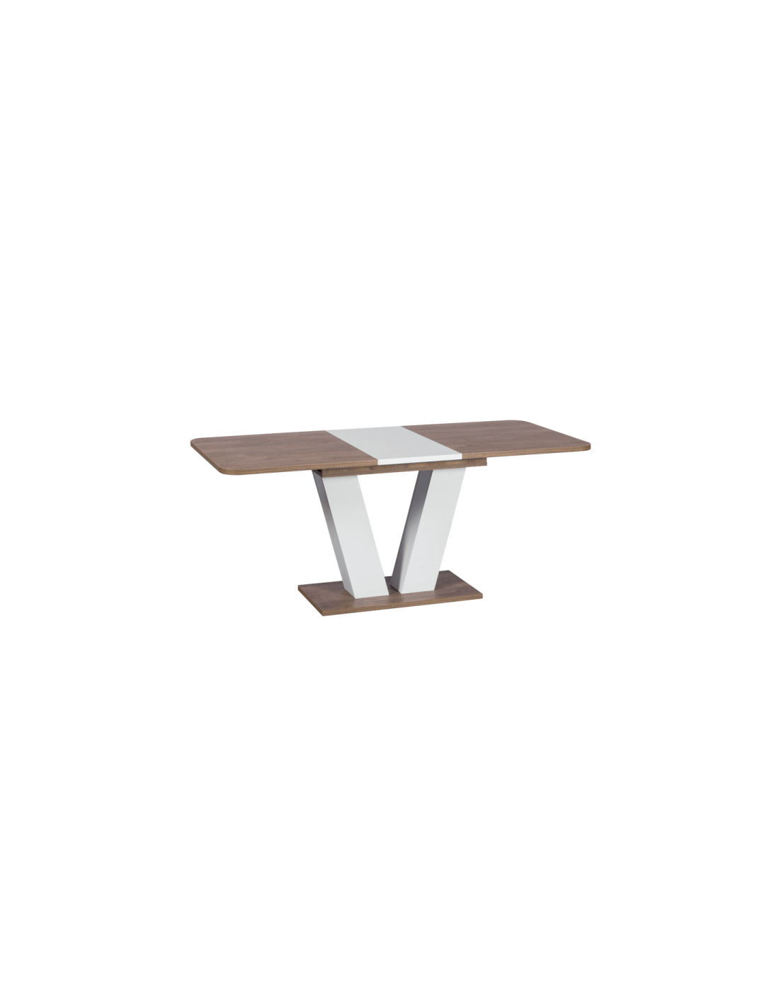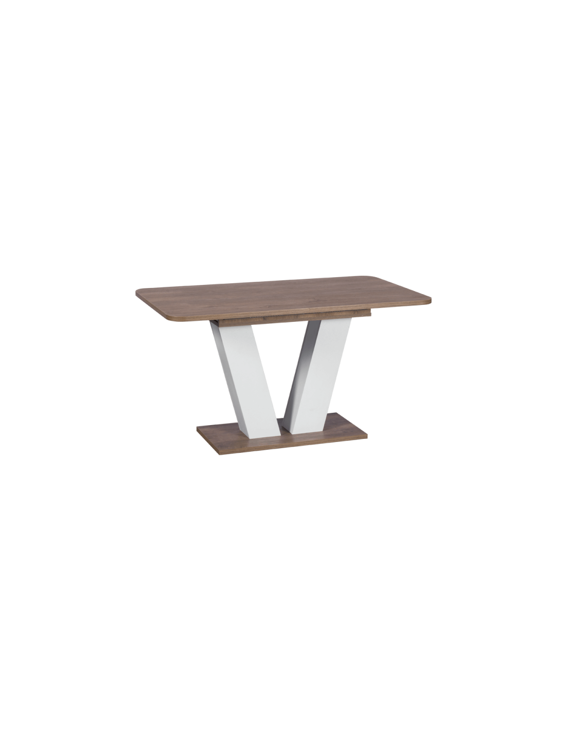 Модерно и функционално решение Привлекателна, функционална и модерна – това e разтегателната трапезна маса ALARA. Интересната форма на краката, наподобяваща буквата V, грабва вниманието и внася естетика в интериора. Облите форми на плота, двуцветното съчетание на материала и размерът я превръщат в неподражаема придобивка за вашия дом. V-образната долна част, спечелва простор и комфорт за седящите, като същевременно гали окото с пленителен дизайн. За по-голяма функционалност, масата е с разтегателен механизъм, благодарение на който сте винаги готови да посрещнете повече гости. |